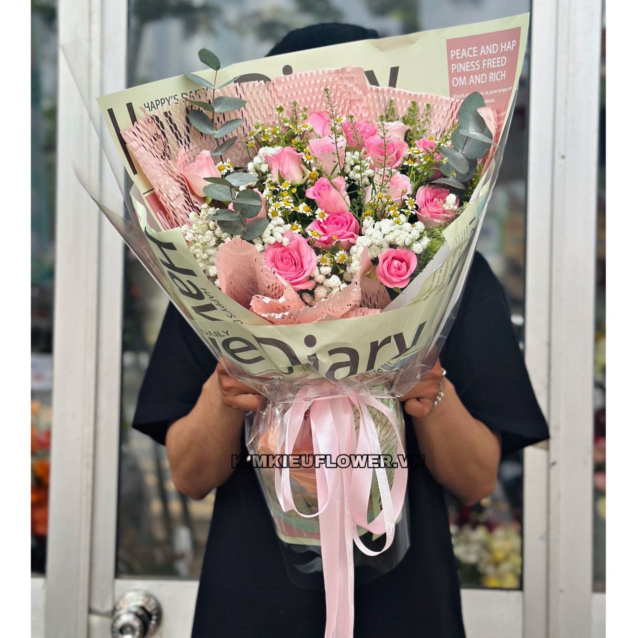 Bó hoa HB695 gồm: + 9 Hoa hồng dâu + 6 Hoa hồng lạc thần + và các lá phụ khác - Liên hệ KIM KIỀU FLOWER để tư vấn thiết kế mẫu hoa theo yêu cầu bạn nhé!