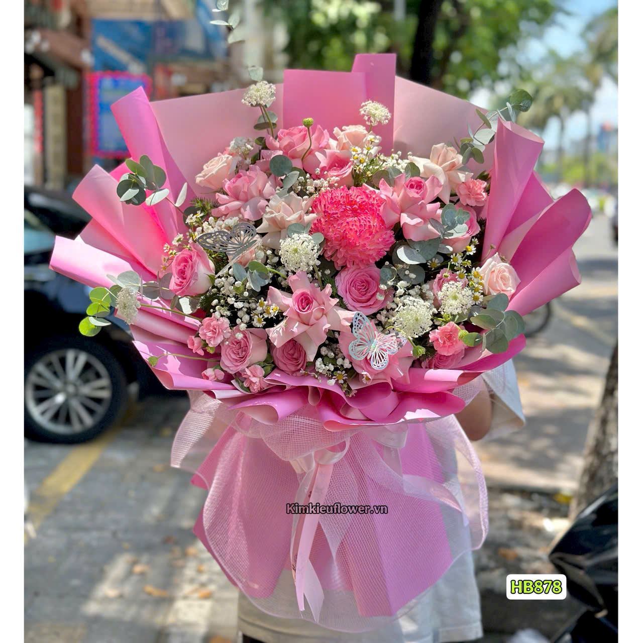 Bó hoa tone hồng mix cúc mẫu đơn - HB878