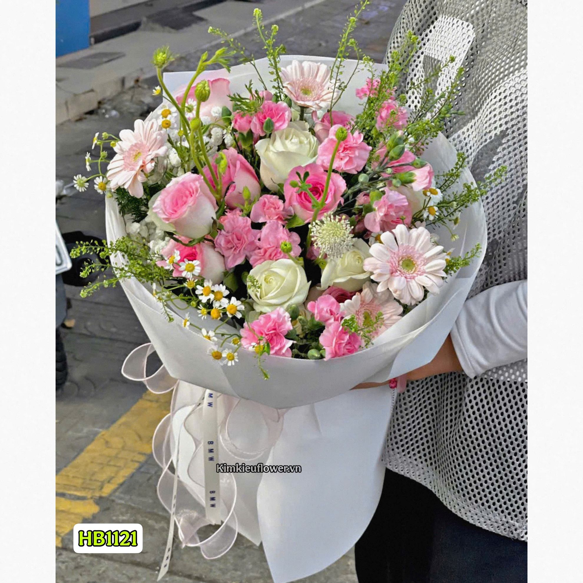 Bó hoa tone trắng mix hồng - HB1121