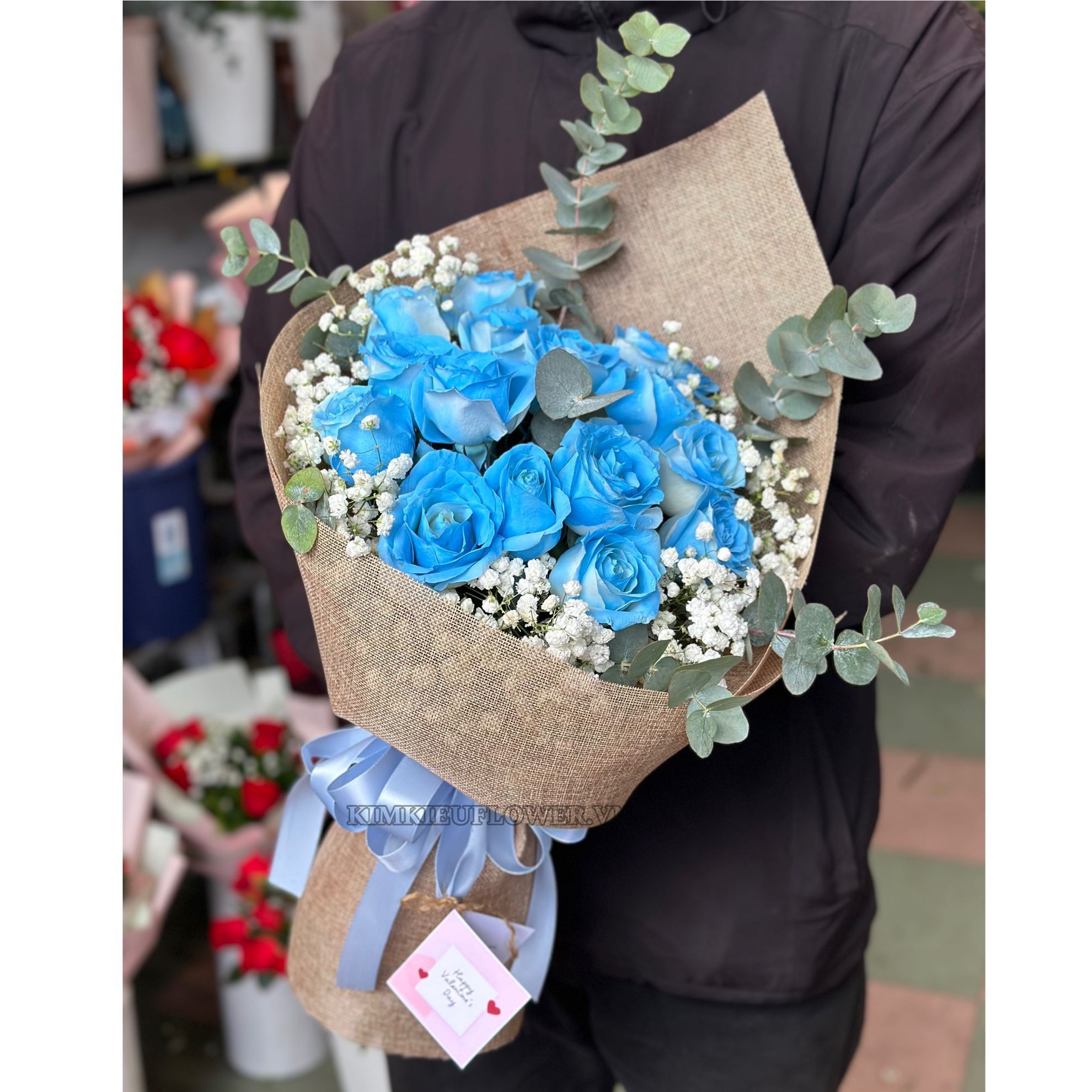 Bó hoa HB590 gồm: + 14 Hoa hồng trắng xịt xanh + và các lá phụ khác - Liên hệ KIM KIỀU FLOWER để tư vấn thiết kế mẫu hoa theo yêu cầu bạn nhé!