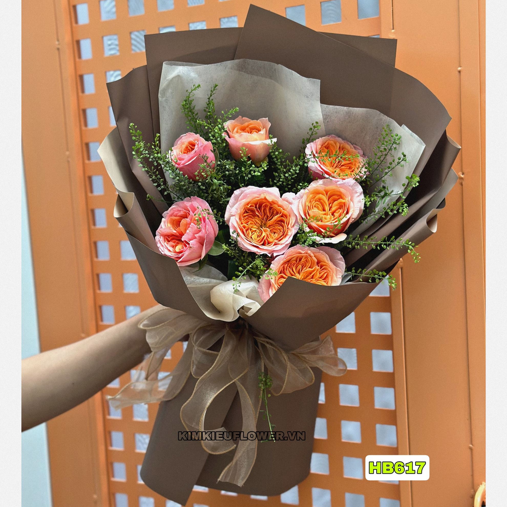 Bó hoa HB617 gồm: + 7 hoa victor hồng + và các lá phụ khác - Liên hệ KIM KIỀU FLOWER để tư vấn thiết kế mẫu hoa theo yêu cầu bạn nhé!