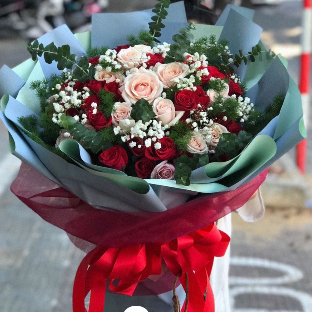Bó hồng đỏ kết hợp hồng kem- HB48