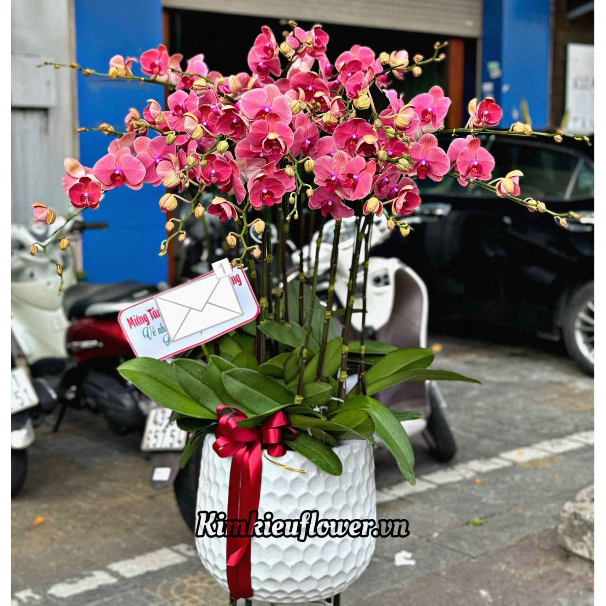 Mẫu HĐ35 gồm các loại hoa: + 9 cây lan hồ điệp cam ( 18 cành ) + Liên hệ KIM KIỀU FLOWER để tư vấn thiết kế mẫu hoa theo yêu cầu bạn nhé!
