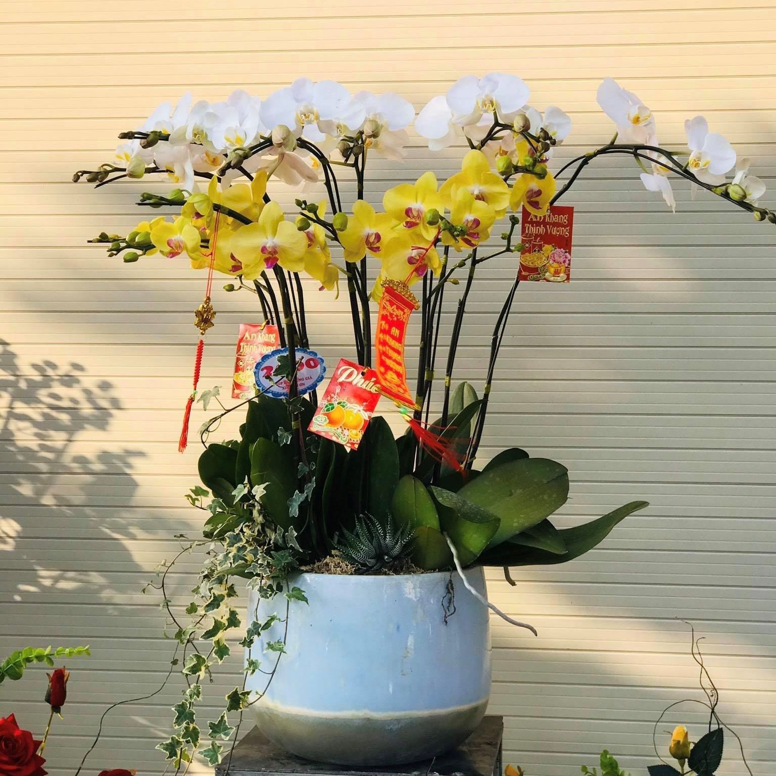 Mẫu HĐ 09 : Với sự kết hợp giữa lan hồ điệp trắng và vàng làm chậu hồ điệp trở nên tinh tế và sang trọng, rất thích hợp để trang trí ở các phòng không gian mở, một chậu lan hồ điệp thích hợp làm không gian trở nên ấm áp cho gia đình của bạn - Mẫu HĐ 09: gồm + 3 cành lan hồ điệp - 2 vòi / 1 cành + 6 cành lan hồ điệp trắng + và các hoa,lá phụ khác- Liên hệ KIM KIỀU FLOWER để tư vấn thiết kế mẫu hoa theo yêu cầu bạn nhé!