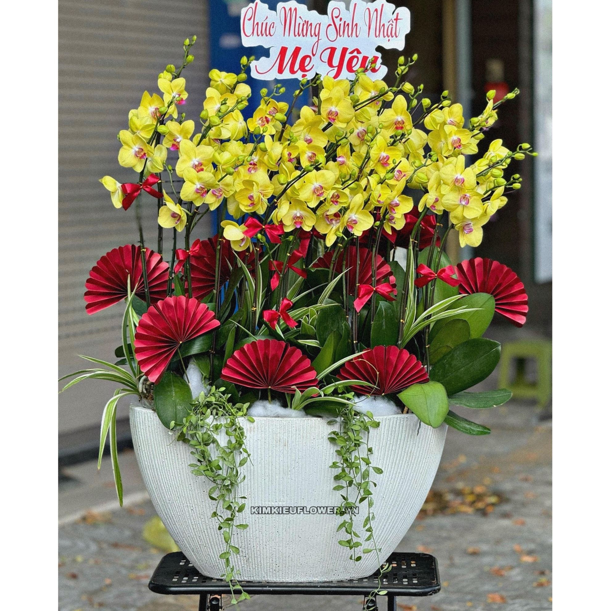 Mẫu HĐ 30 gồm các loại hoa: + 13 cây lan hồ điệp vàng ( 26 cành ) + Liên hệ KIM KIỀU FLOWER để tư vấn thiết kế mẫu hoa theo yêu cầu bạn nhé!
