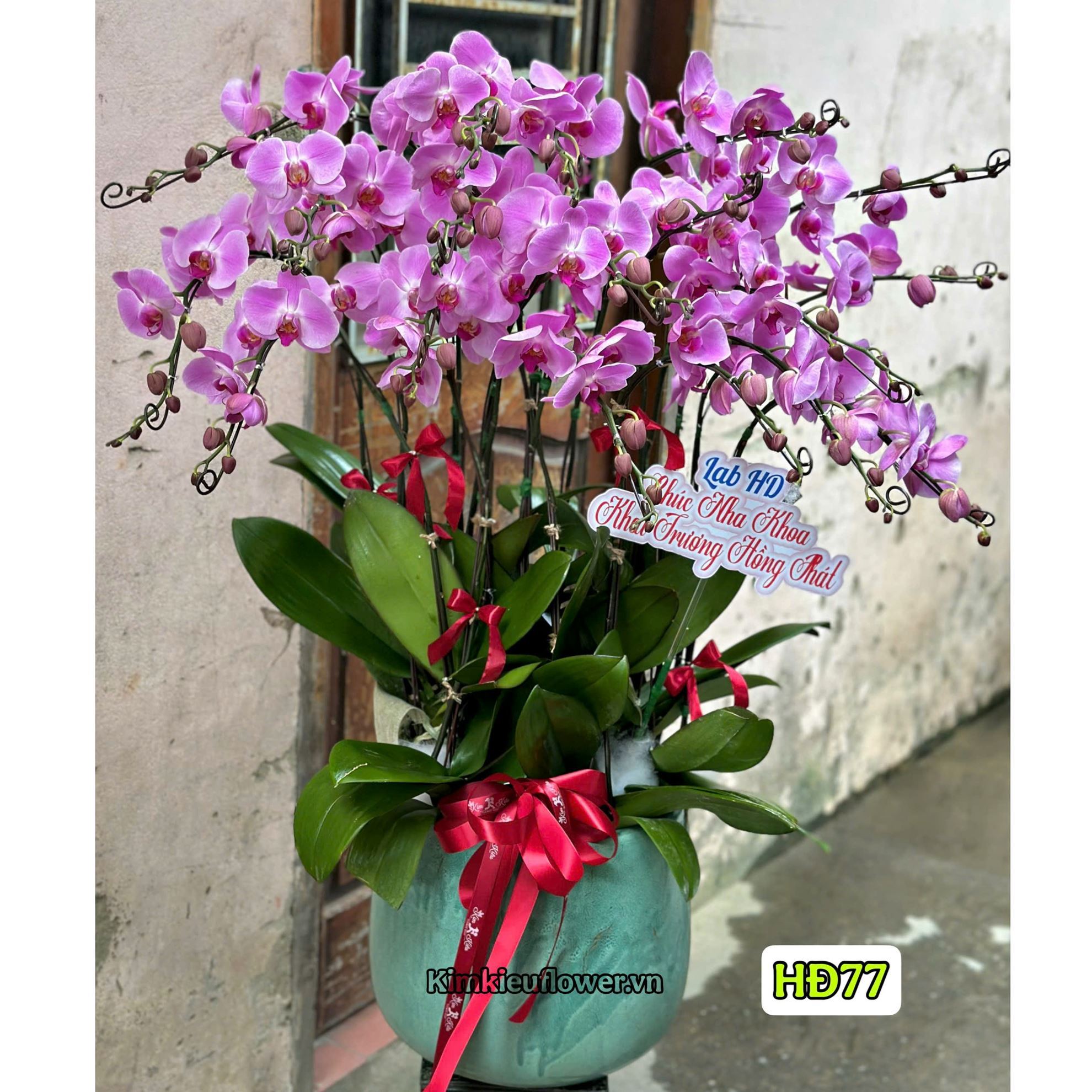 Mẫu HĐ77 gồm các loại hoa: + 9 cây lan hồ điệp tím (18 cành) + Liên hệ KIM KIỀU FLOWER để tư vấn thiết kế mẫu hoa theo yêu cầu bạn nhé!