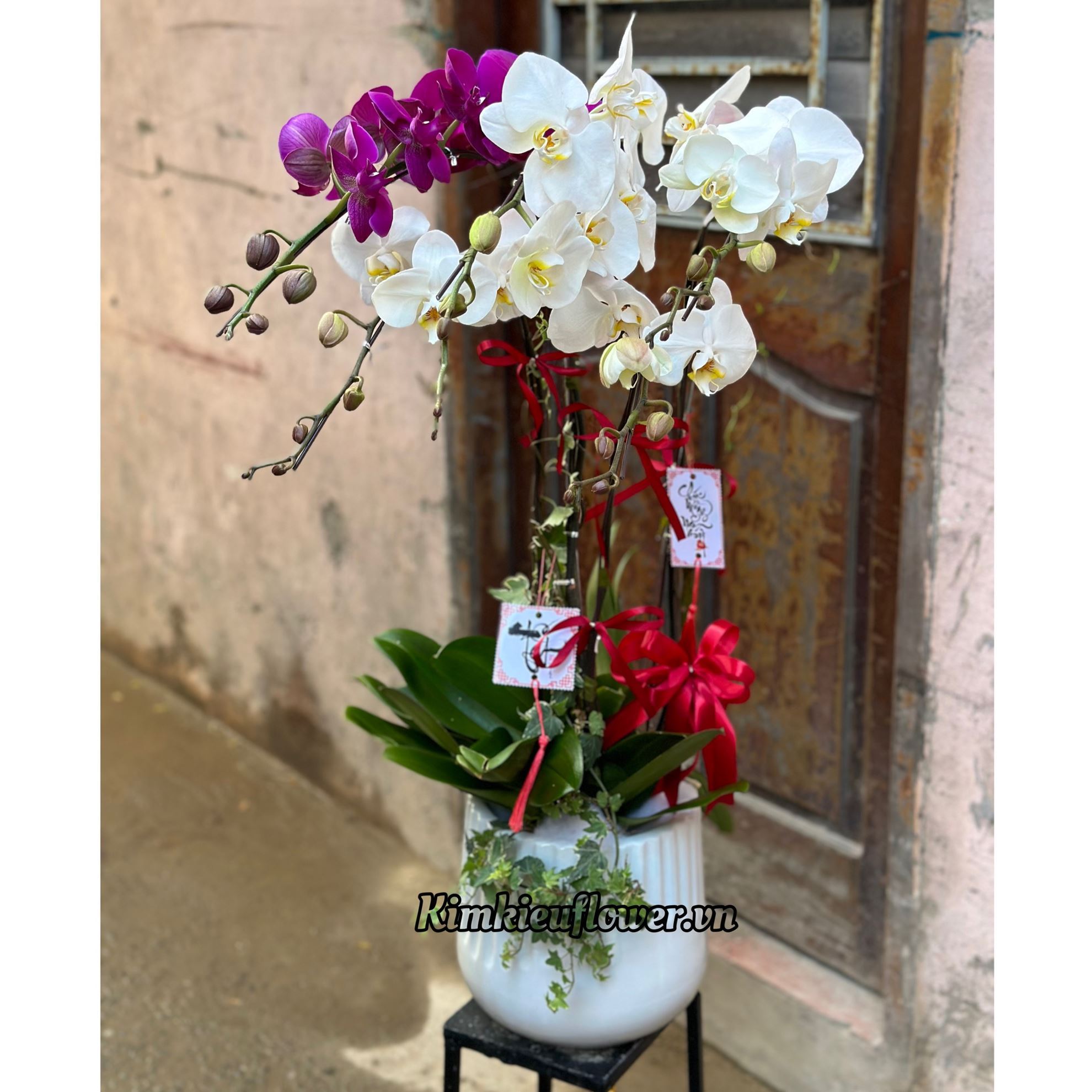 Chậu lan hồ điệp tím mix trắng - HĐ37