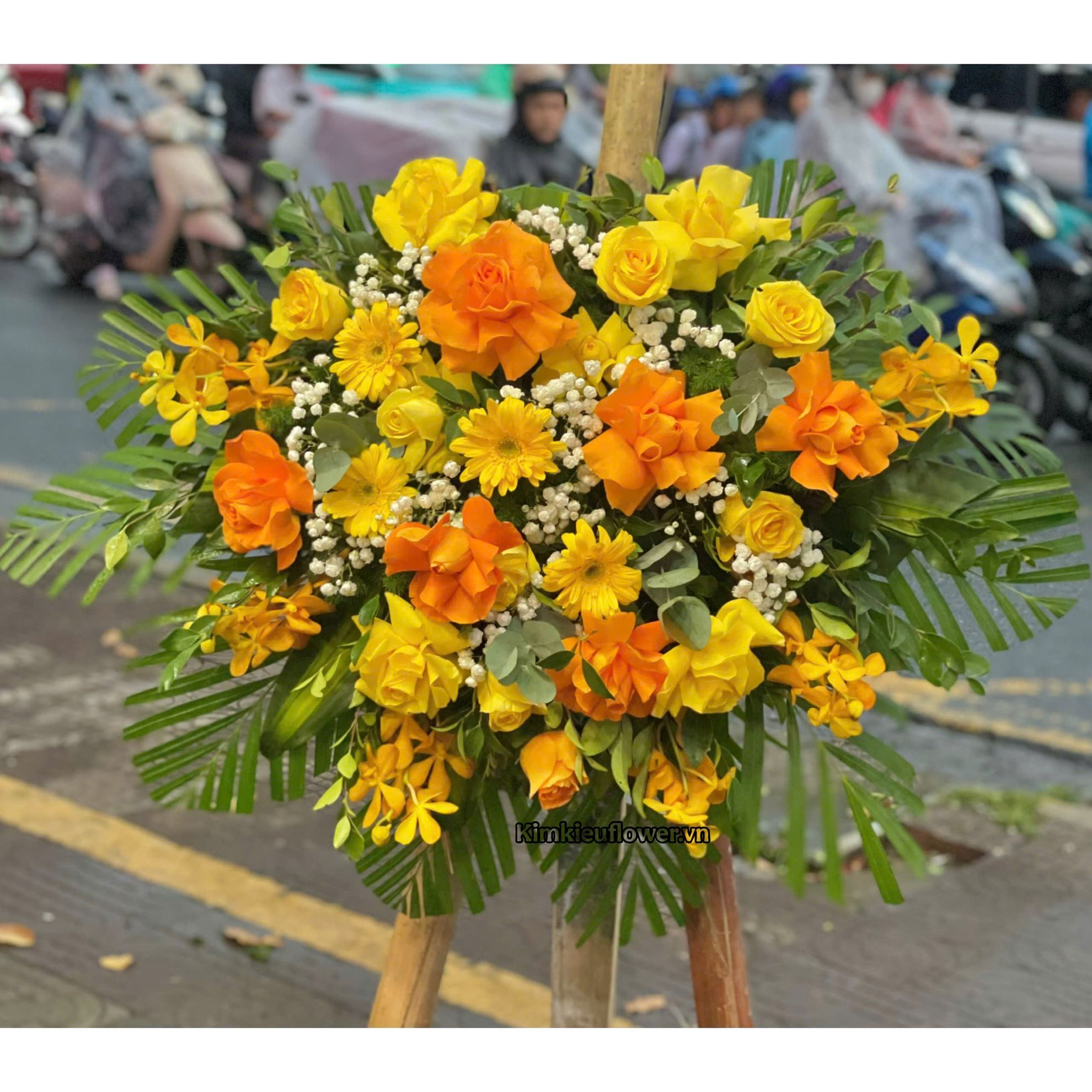Đĩa hoa chúc mừng tone vàng cam - ĐH65
