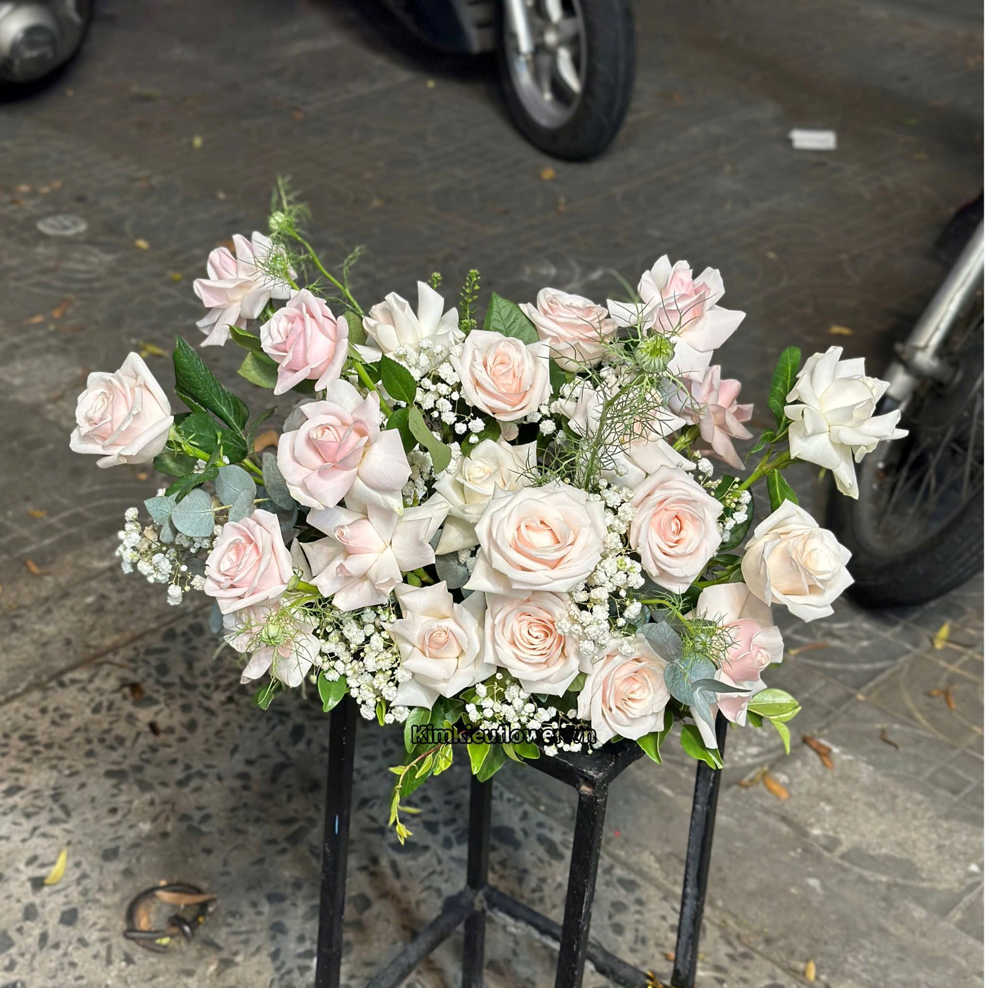Mẫu ĐH32 gồm các loại hoa: + 22 hoa hồng kem + và các lá phụ khác - Liên hệ KIM KIỀU FLOWER để tư vấn thiết kế mẫu hoa theo yêu cầu bạn nhé!
