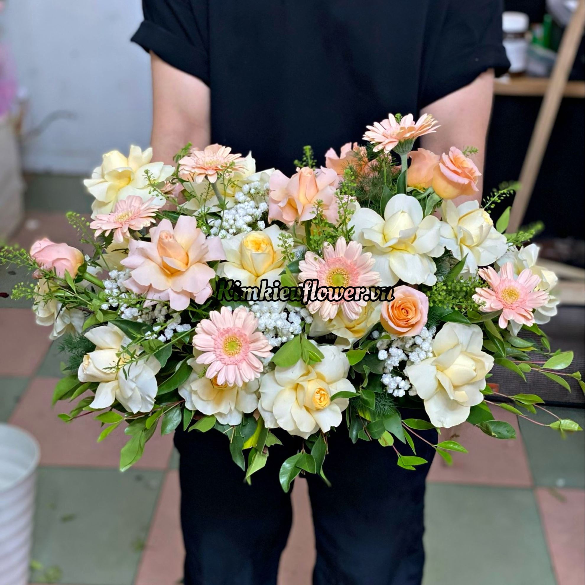 Đĩa hoa chúc mừng ĐH25 gồm: + hoa hồng victor vàng + hoa hồng shimmer + hoa đồng tiền + và các lá phụ khác - Liên hệ KIM KIỀU FLOWER để tư vấn thiết kế mẫu hoa theo yêu cầu bạn nhé!