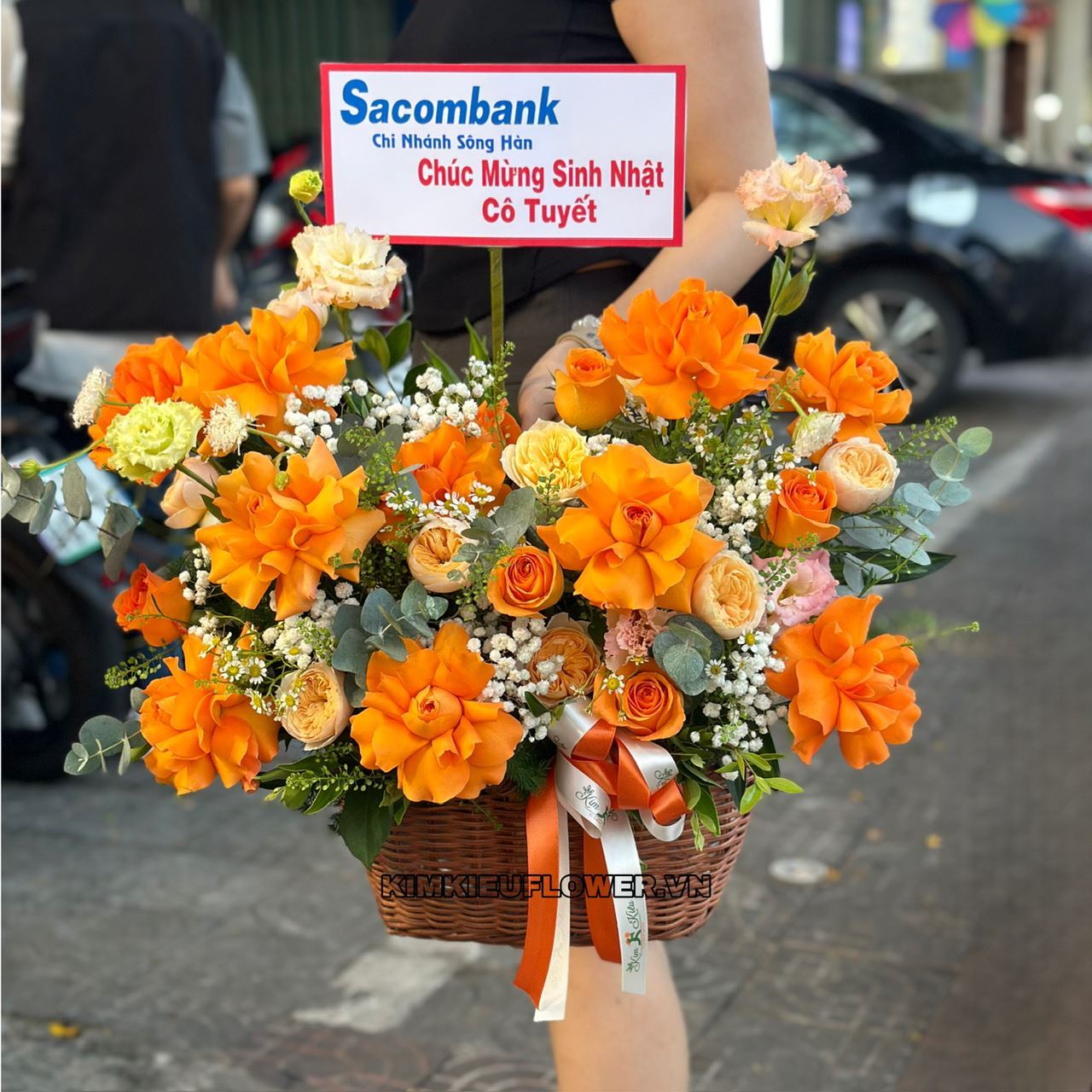 giỏ hoa cam quốc vương mix hồng juliet - HG709