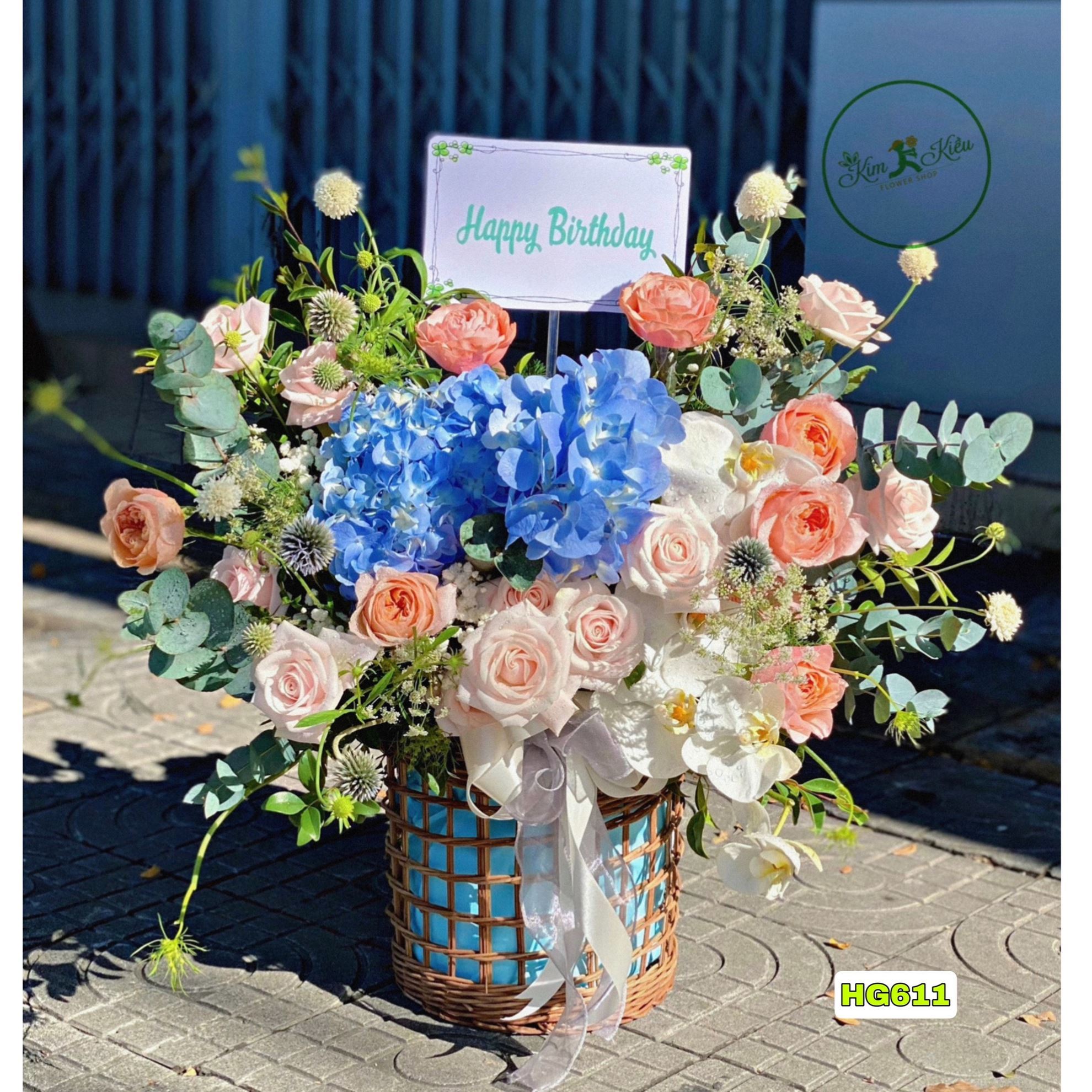 Mẫu HG611 gồm các loại hoa: + cẩm tú cầu xanh + victor hồng + lan hồ điệp trắng + hoa hồng kem + và các hoa,lá phụ khác - Liên hệ KIM KIỀU FLOWER để tư vấn thiết kế mẫu hoa theo yêu cầu bạn nhé!