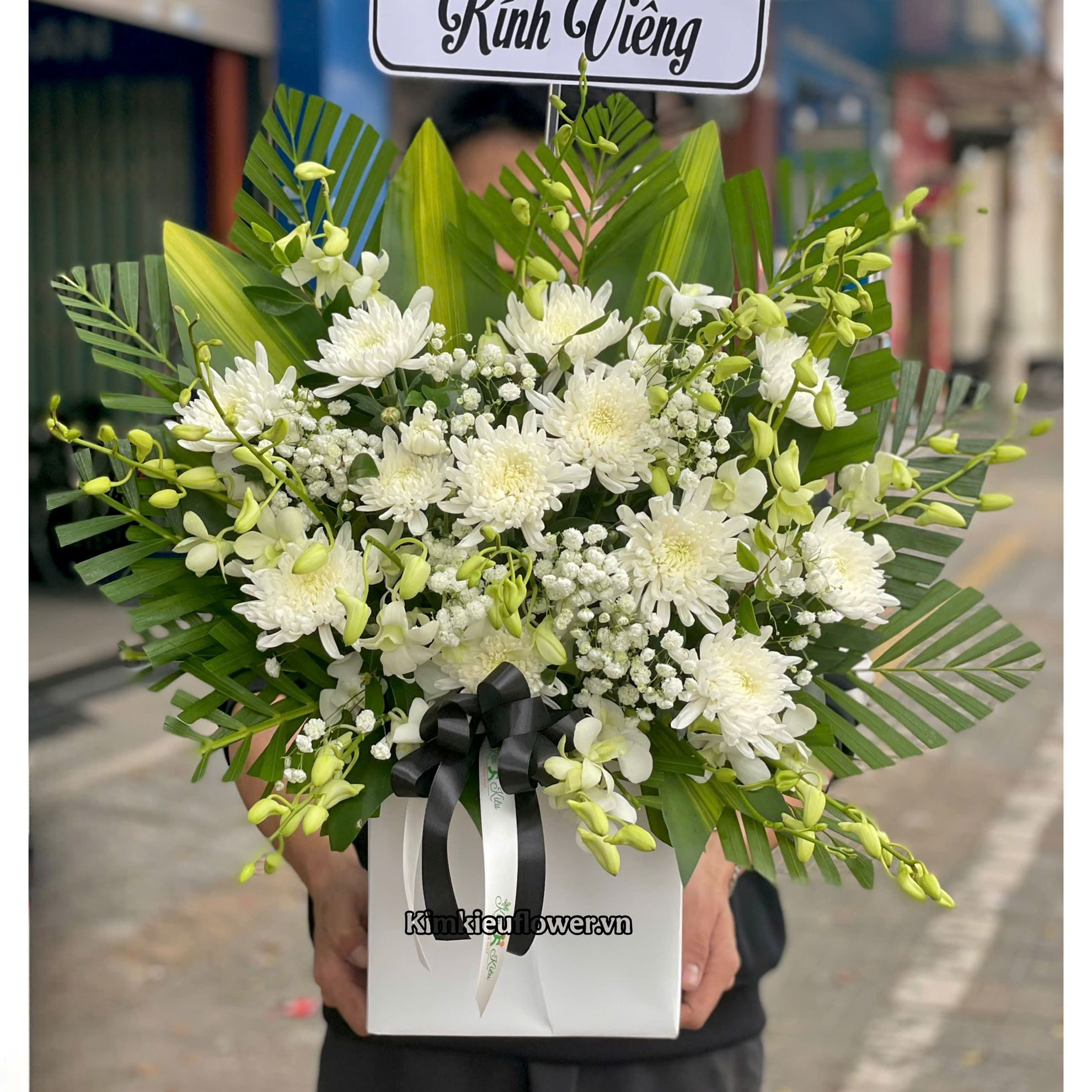 Giỏ hoa chia buồn cúc mix lan trắng - GV21