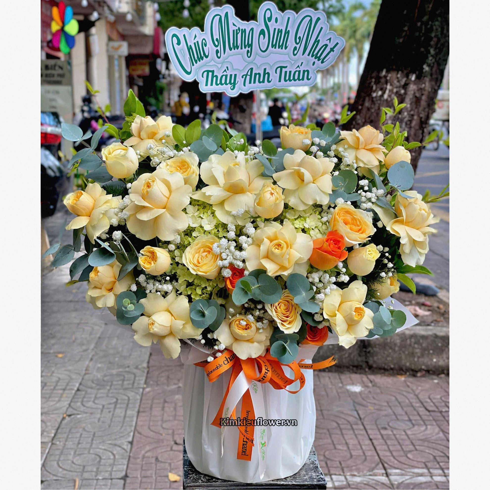 Mẫu HG935 gồm các loại hoa: + 12 victo lận cánh, 10 k lận + 3 cam quốc vương + 2 tú cầu + và các lá phụ khác - Liên hệ KIM KIỀU FLOWER để tư vấn thiết kế mẫu hoa theo yêu cầu bạn nhé!