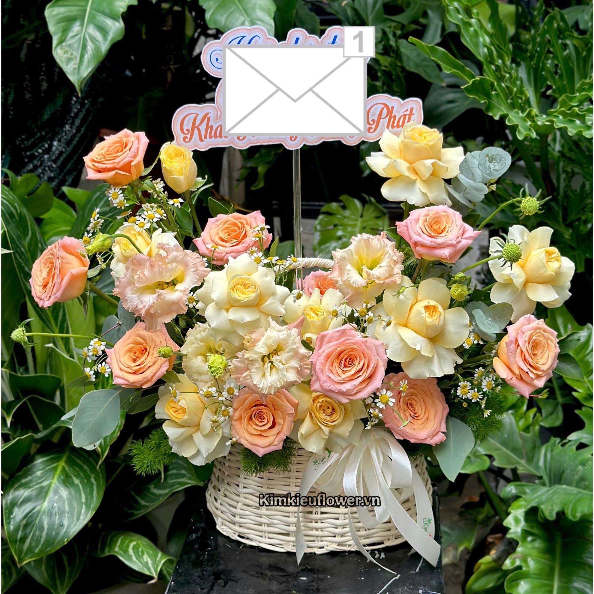 Giỏ hoa chúc mừng hồng victo mix hồng shimmer - HG960