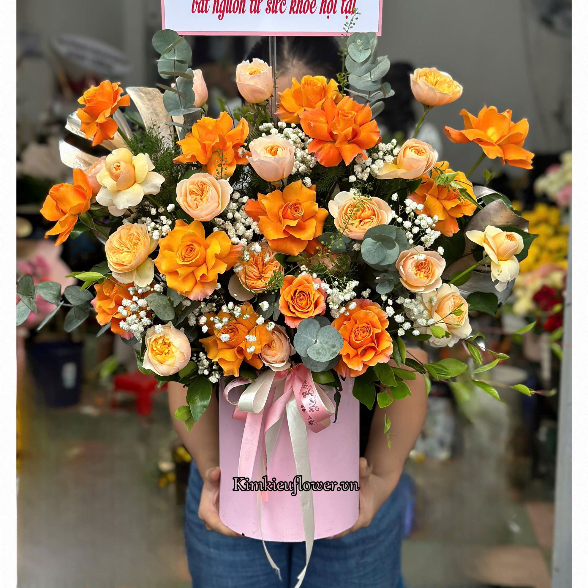 Giỏ hoa chúc mừng tone cam - HG771