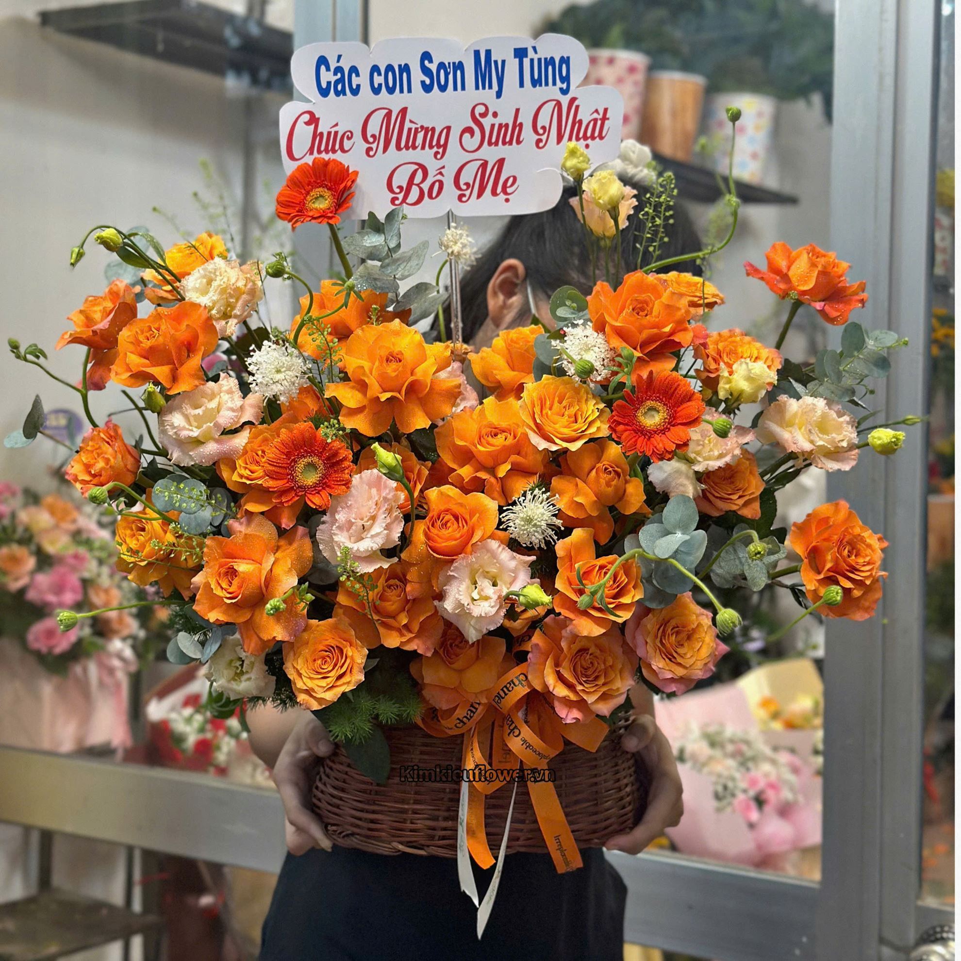 Giỏ hoa chúc mừng tone cam mix cát tường - HG893