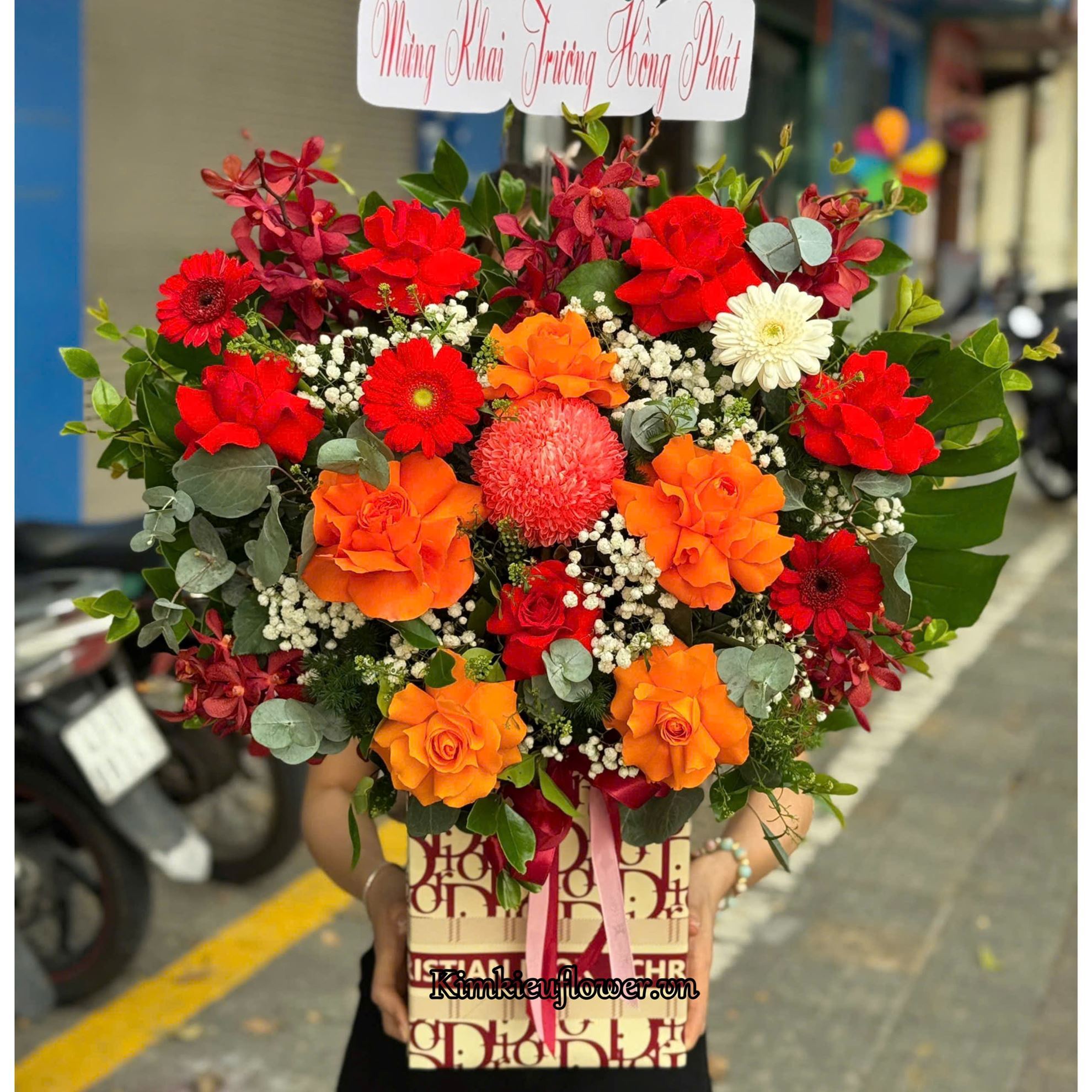 Giỏ hoa chúc mừng tone đỏ cam - HG750