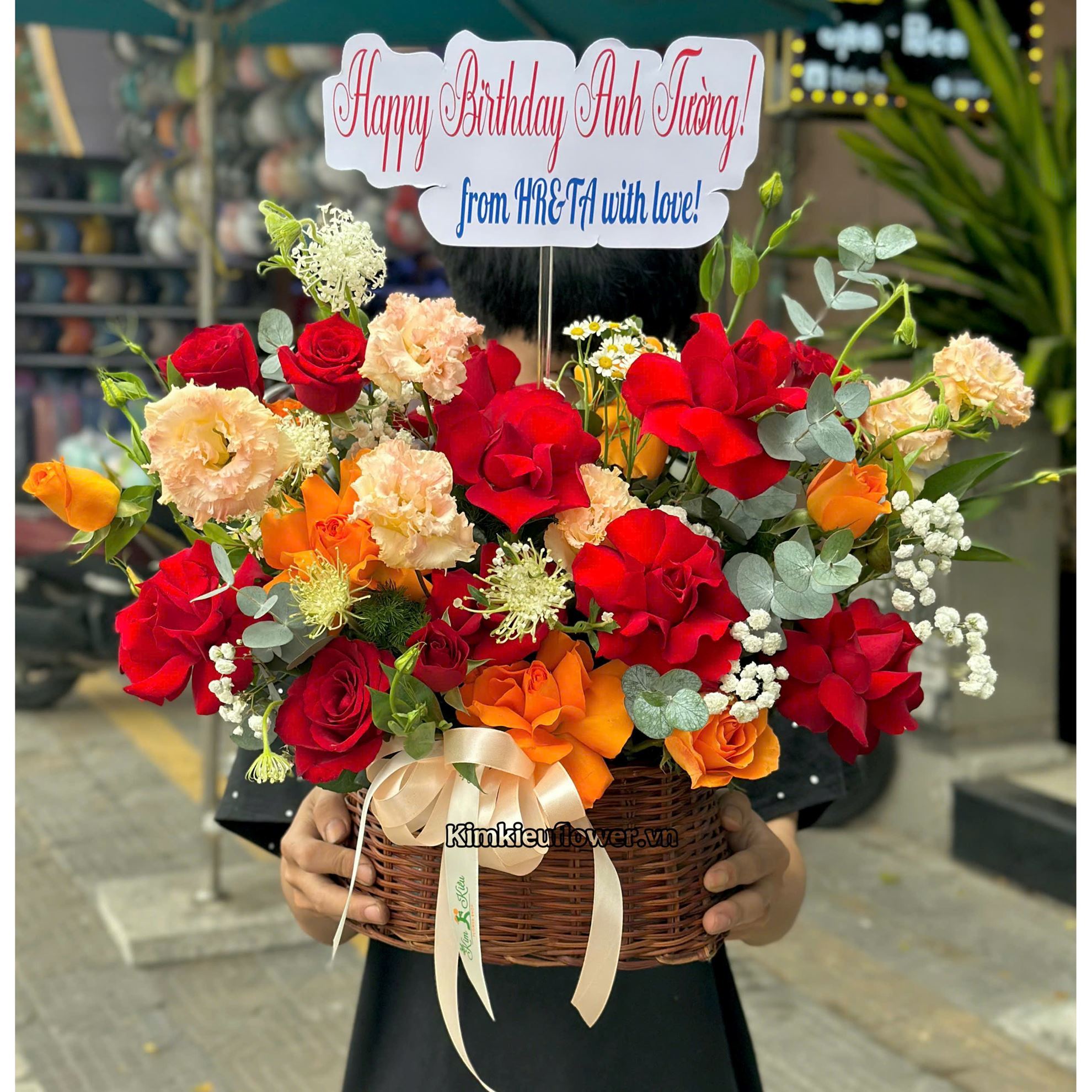 Giỏ hoa chúc mừng tone đỏ cam - HG823