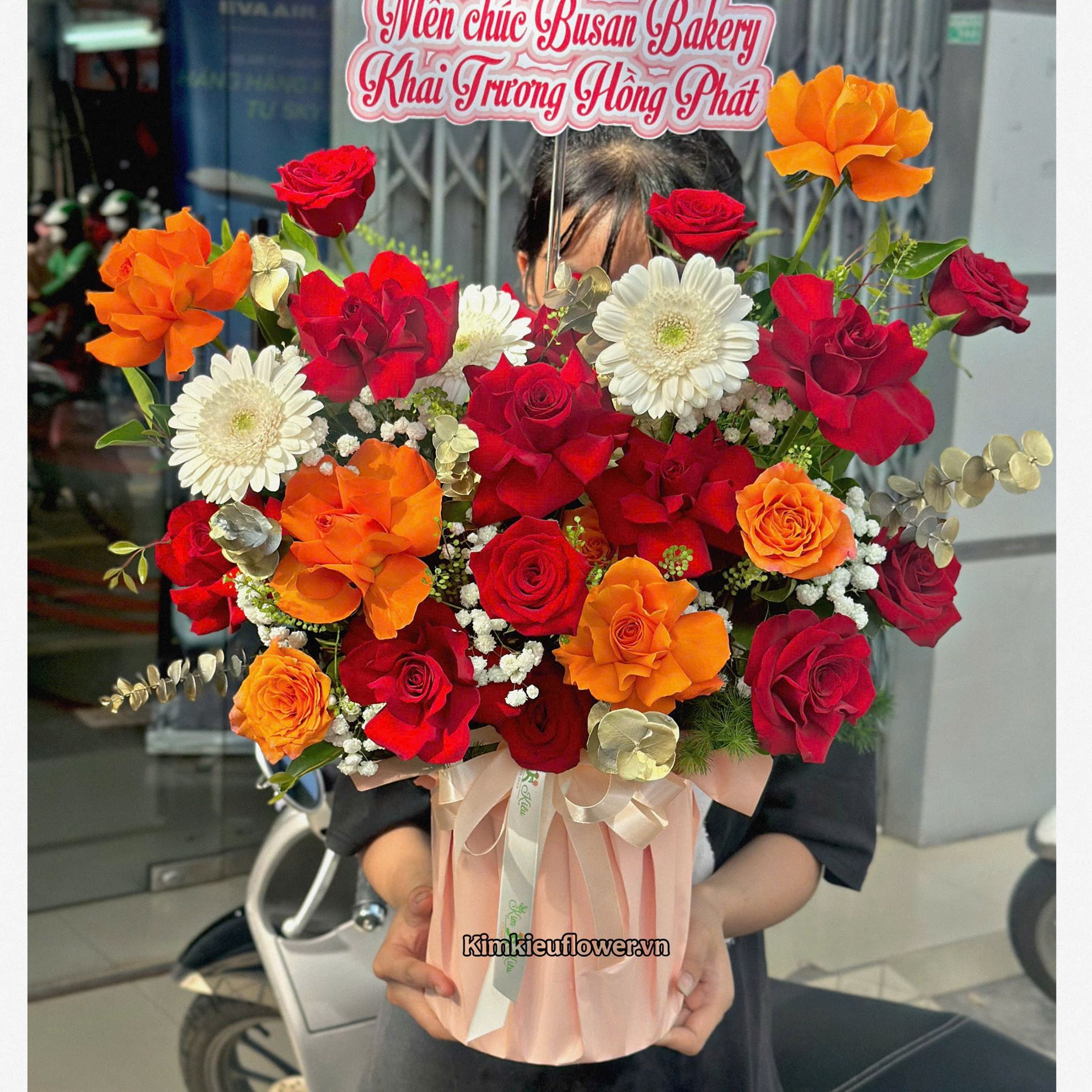 Giỏ hoa chúc mừng tone đỏ cam - HG943