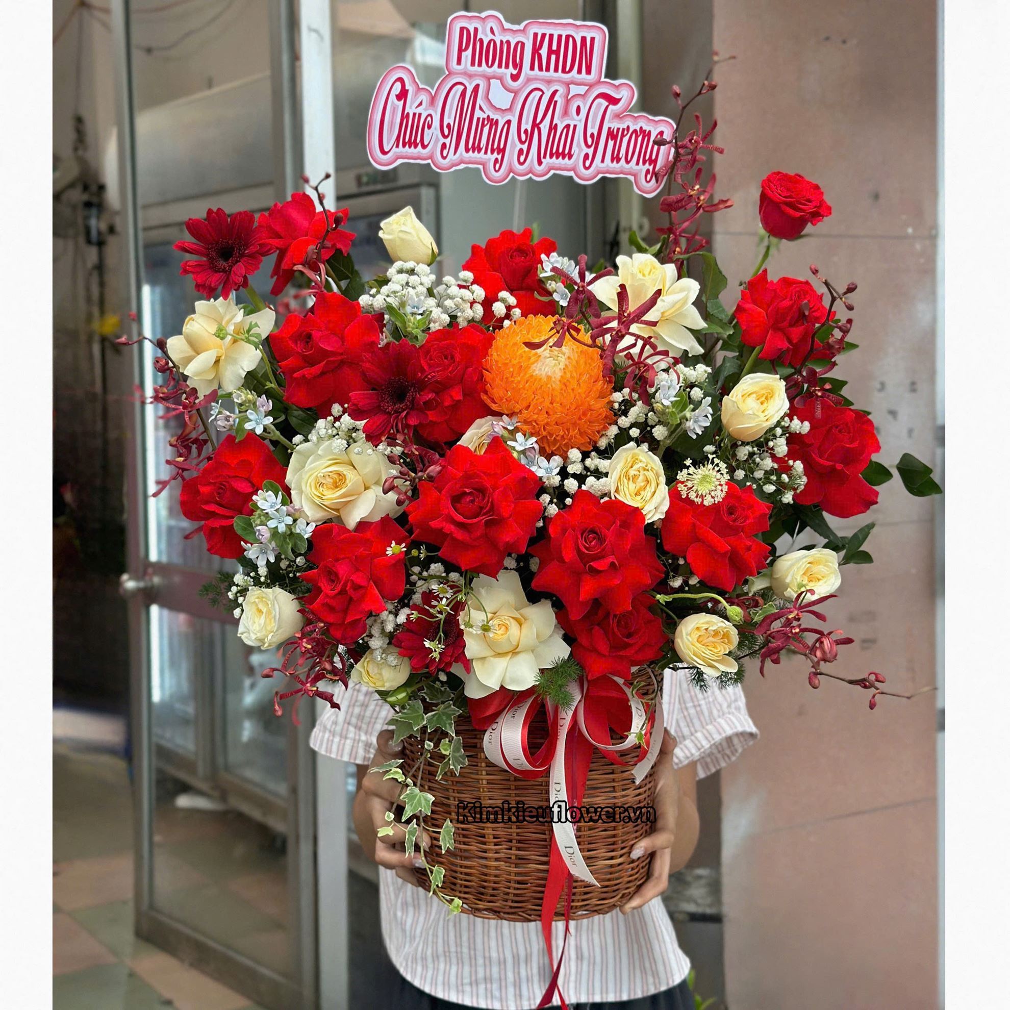 Giỏ hoa chúc mừng tone đỏ vàng - HG928