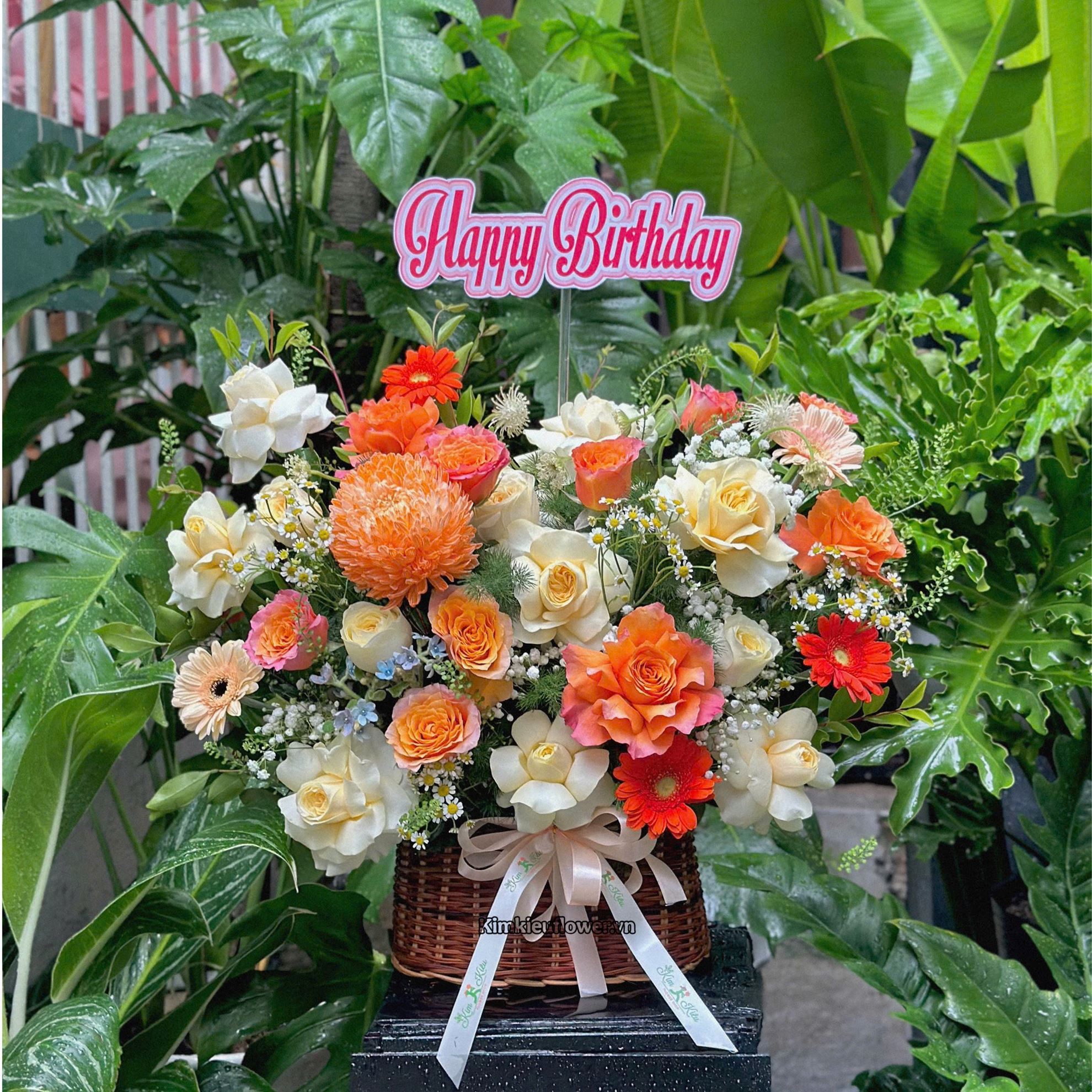 Giỏ hoa chúc mừng tone vàng cam - HG941