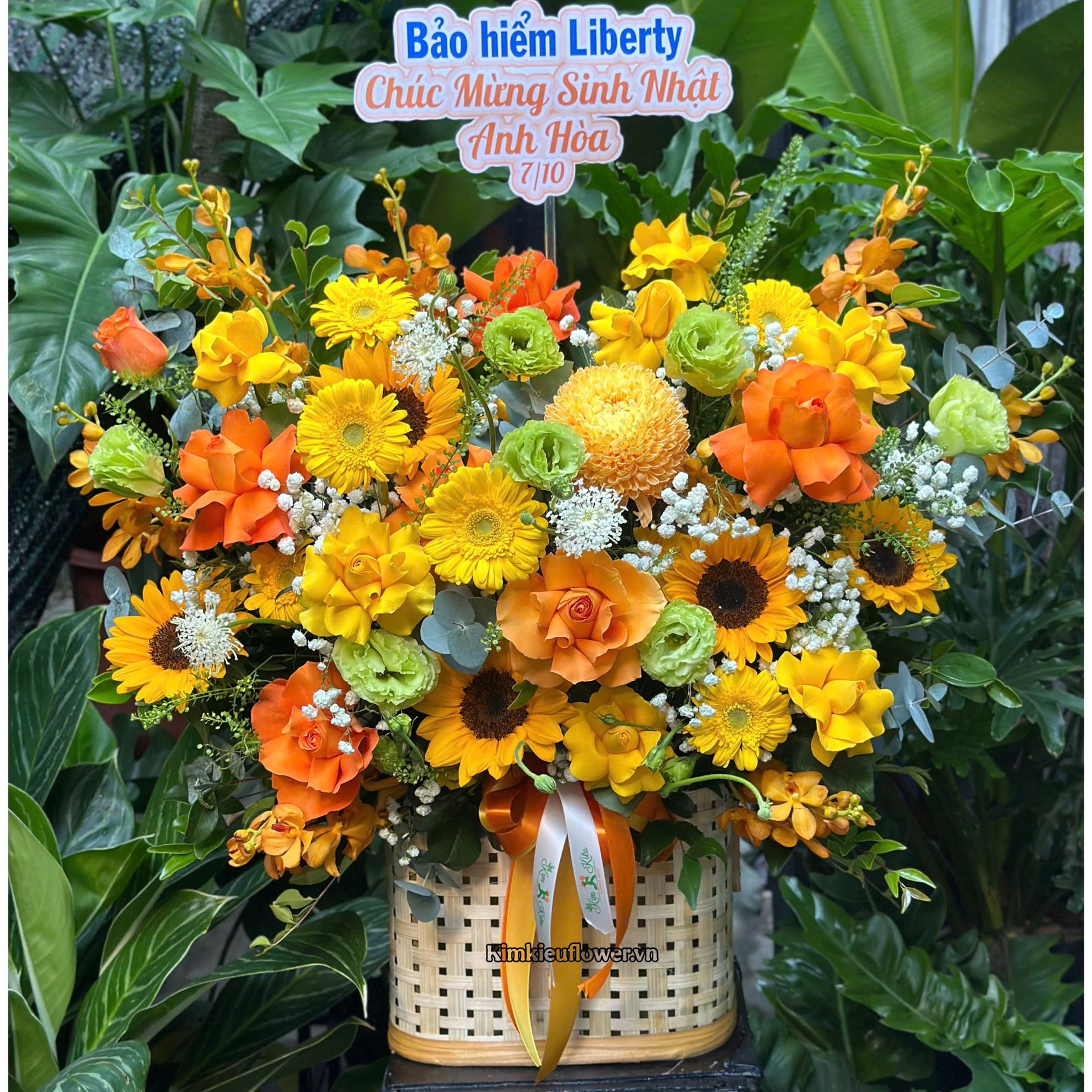 Giỏ hoa chúc mừng tone vàng cam mix hướng dương - HG953
