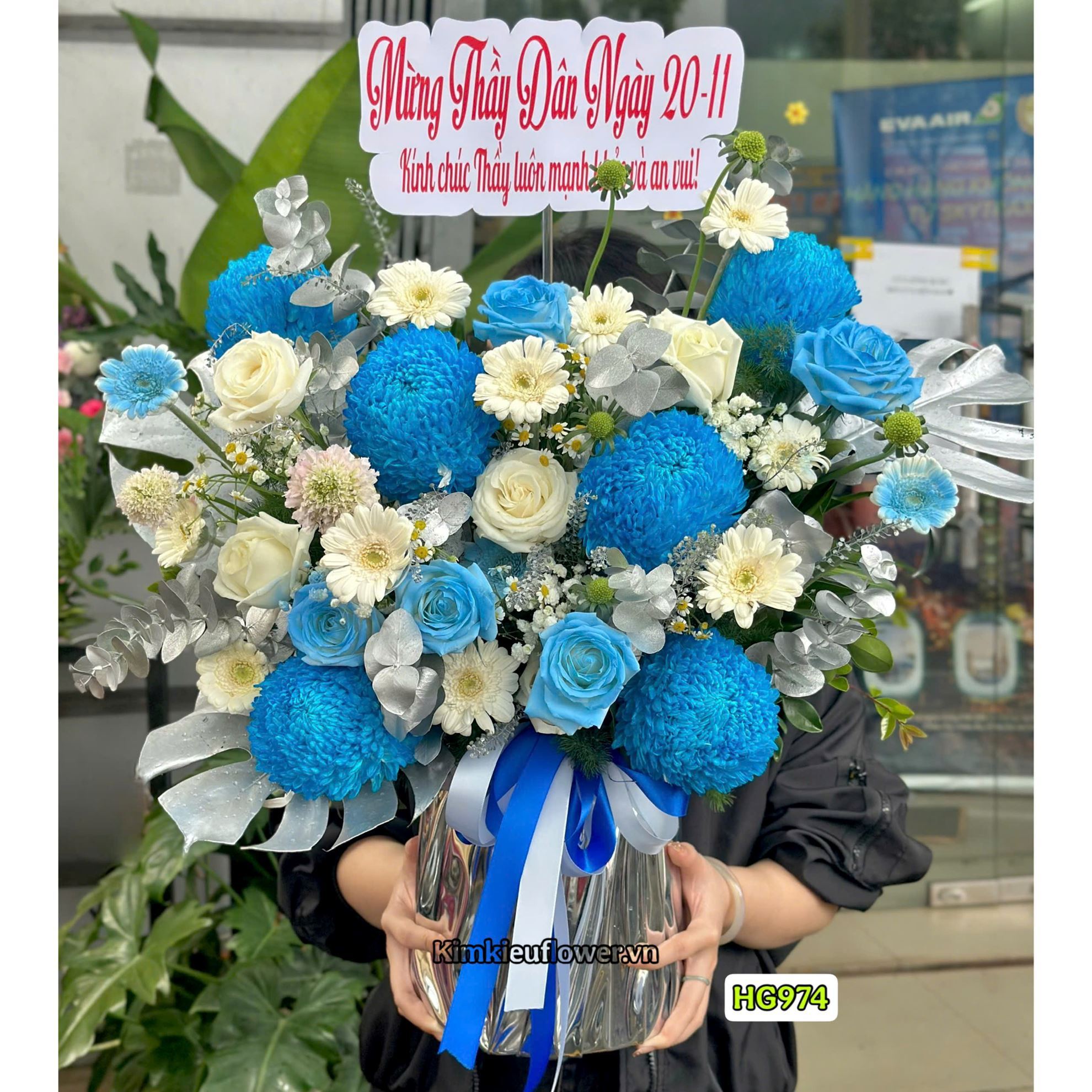 Giỏ hoa chúc mừng tone xanh dương - HG974