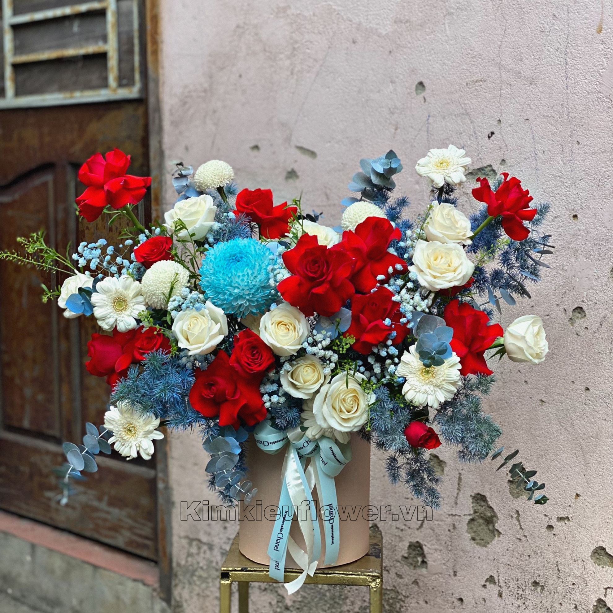 Mẫu HG375 gồm các loại hoa: + hoa hồng đỏ + cúc mẫu đơn xanh nhập khẩu + hoa hồng trắng + cúc pingpong + và các lá phụ khác - Liên hệ KIM KIỀU FLOWER để tư vấn thiết kế mẫu hoa theo yêu cầu bạn nhé!