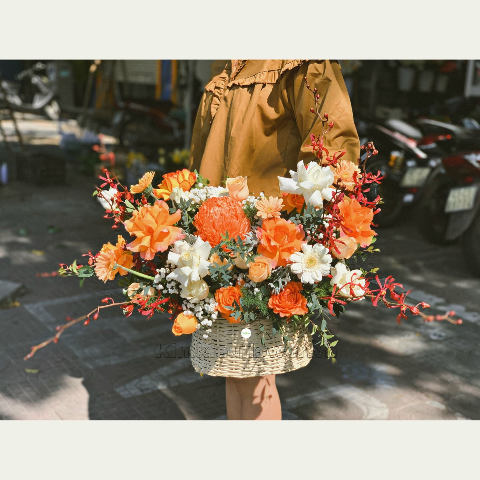 Giỏ hoa hồng cam , lan đỏ - HG328
