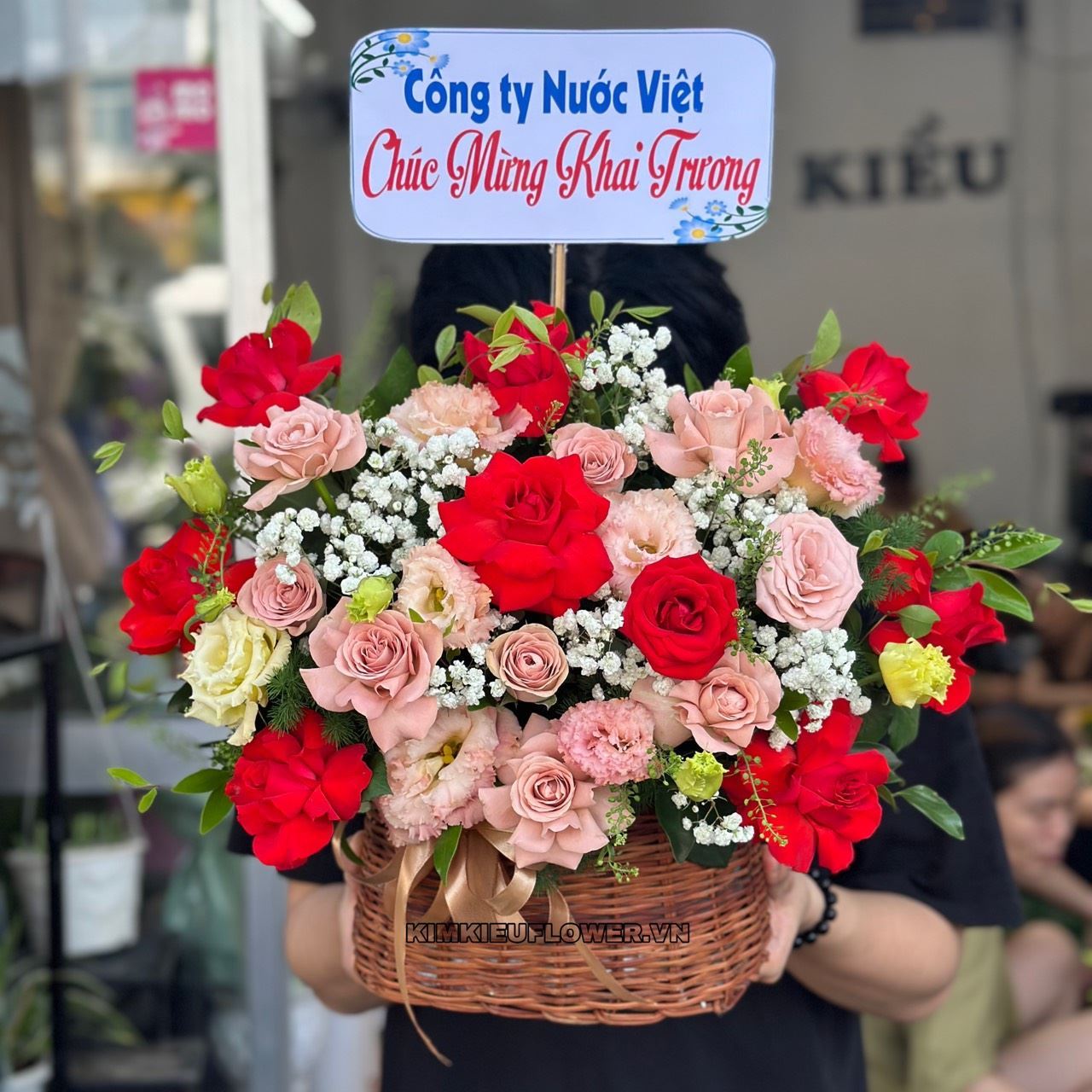 giỏ hoa hồng capuchino mix hồng đỏ - HG708