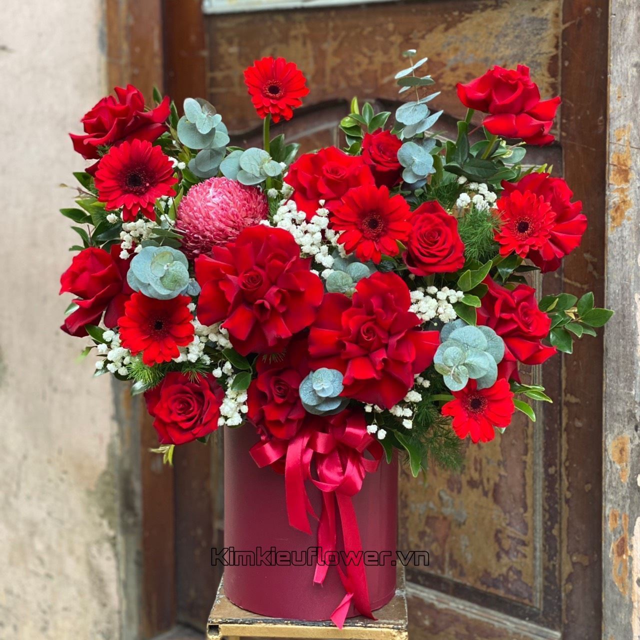 Giỏ hoa hồng đỏ, cúc mẫu đơn - HT528