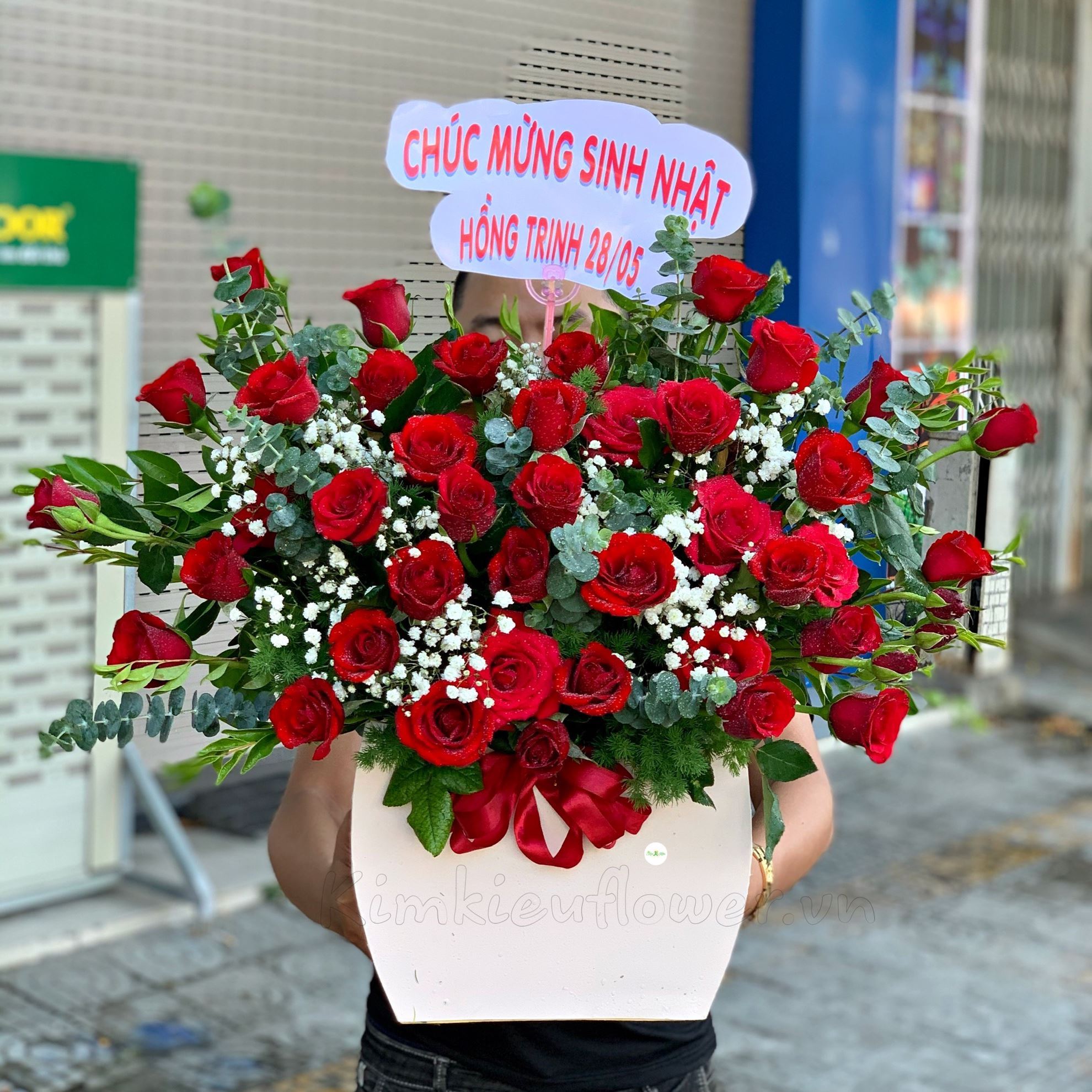 Mẫu HG243 gồm các loại hoa: + hoa hồng đỏ + và các hoa,lá phụ khác- Liên hệ KIM KIỀU FLOWER để tư vấn thiết kế mẫu hoa theo yêu cầu bạn nhé!