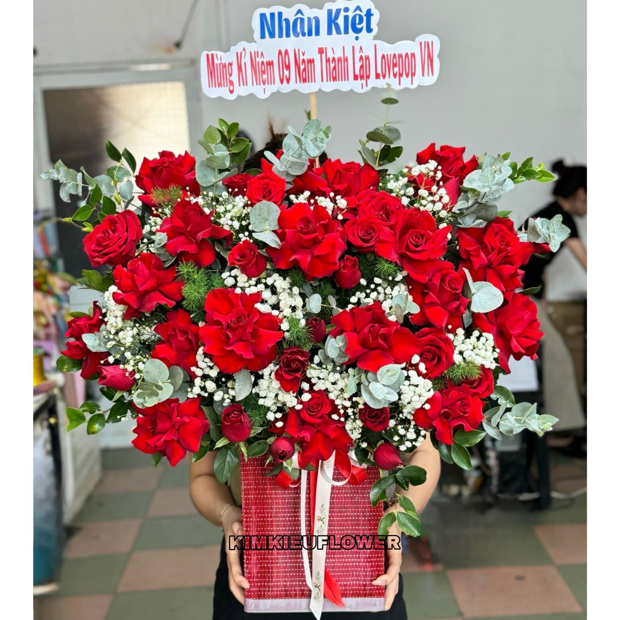 Mẫu HG683 gồm các loại hoa: + 35 hoa hồng đỏ eku ( 18 lận - 17 không lận ) + và các lá phụ khác - Liên hệ KIM KIỀU FLOWER để tư vấn thiết kế mẫu hoa theo yêu cầu bạn nhé!