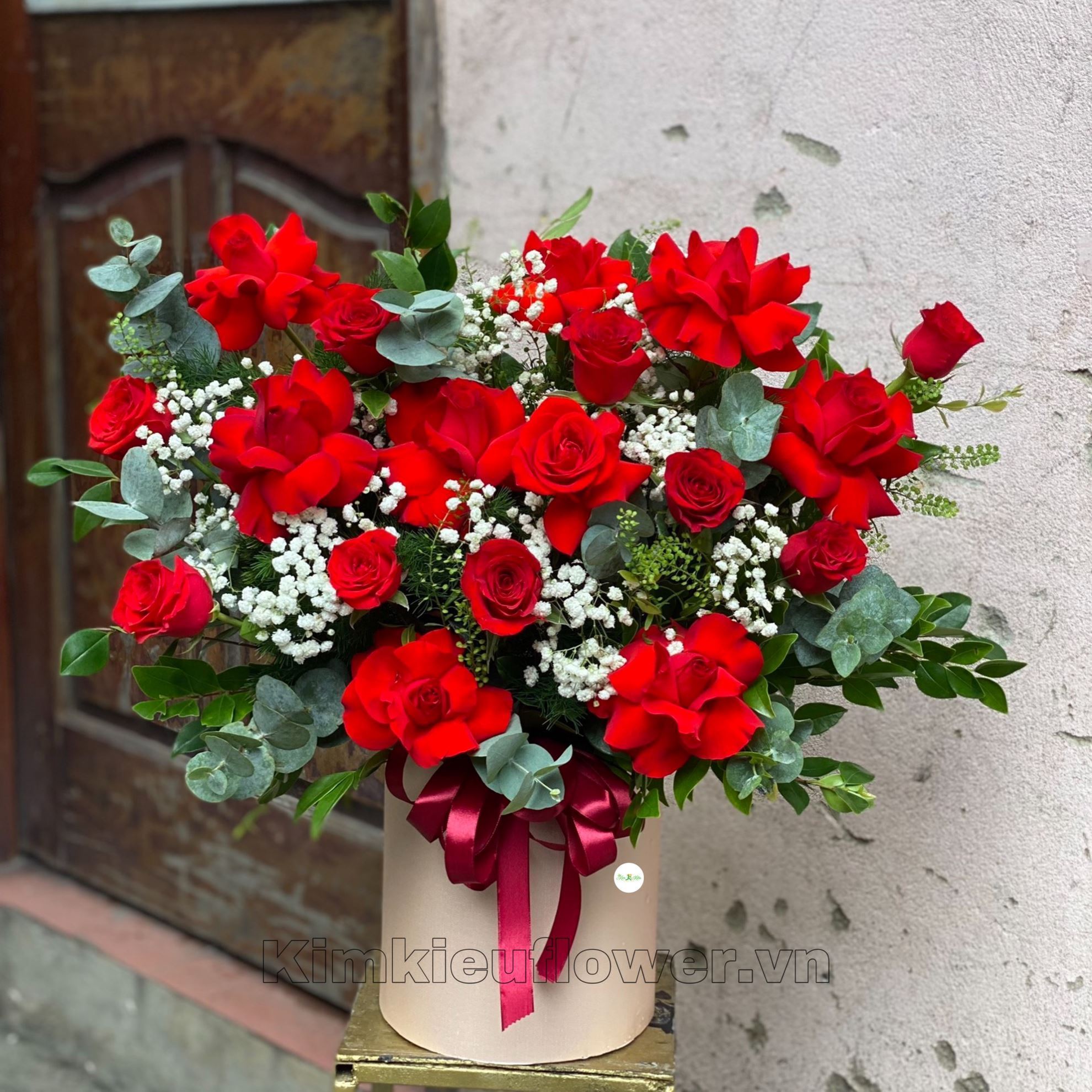 Mẫu HT371 gồm các loại hoa: + 18 hoa hồng đỏ ( 9 lận, 9 không lận) + và các lá phụ khác - Liên hệ KIM KIỀU FLOWER để tư vấn thiết kế mẫu hoa theo yêu cầu bạn nhé!