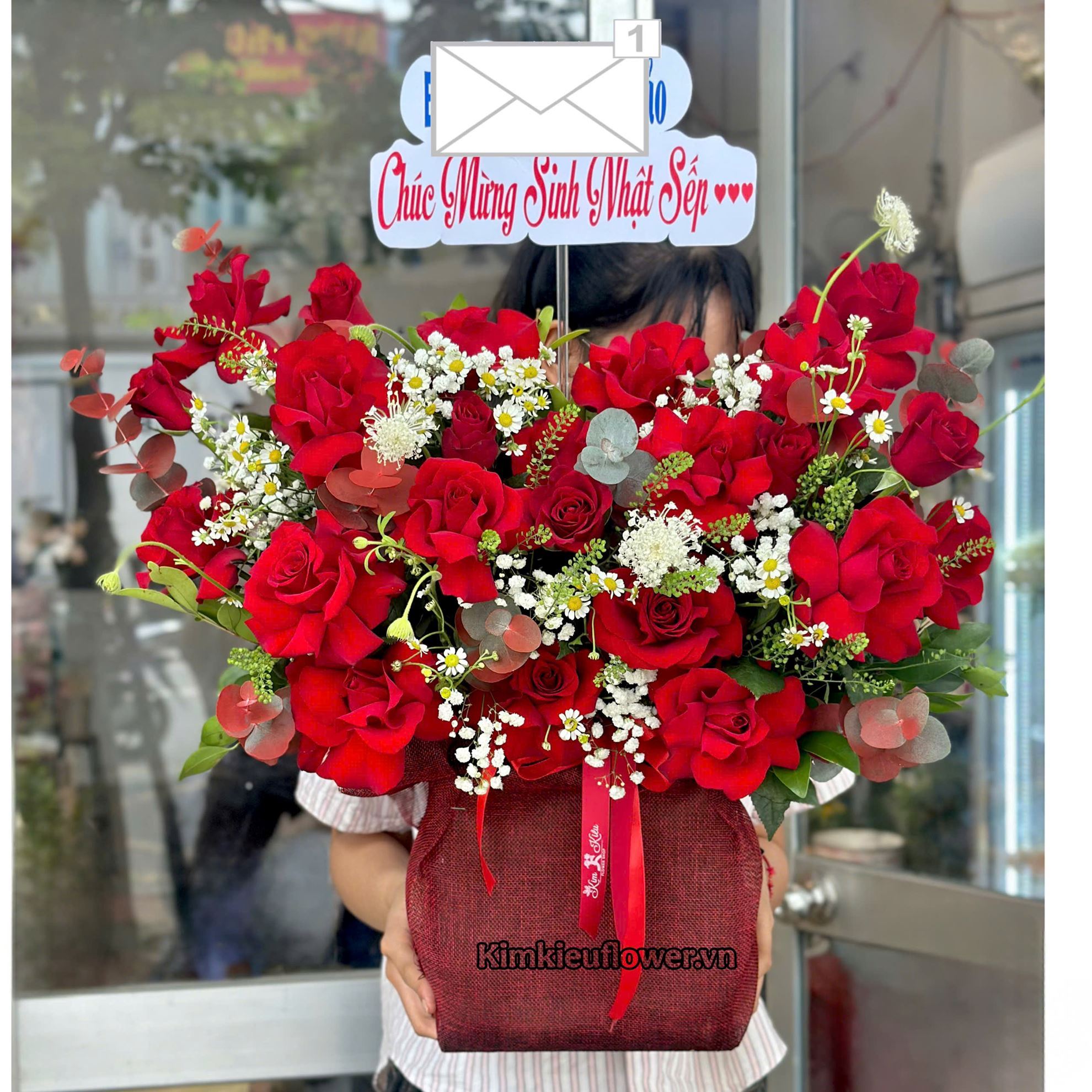 Mẫu PN28 gồm các loại hoa: + 22 hồng đỏ + và các hoa,lá phụ khác - Liên hệ KIM KIỀU FLOWER để tư vấn thiết kế mẫu hoa theo yêu cầu bạn nhé!