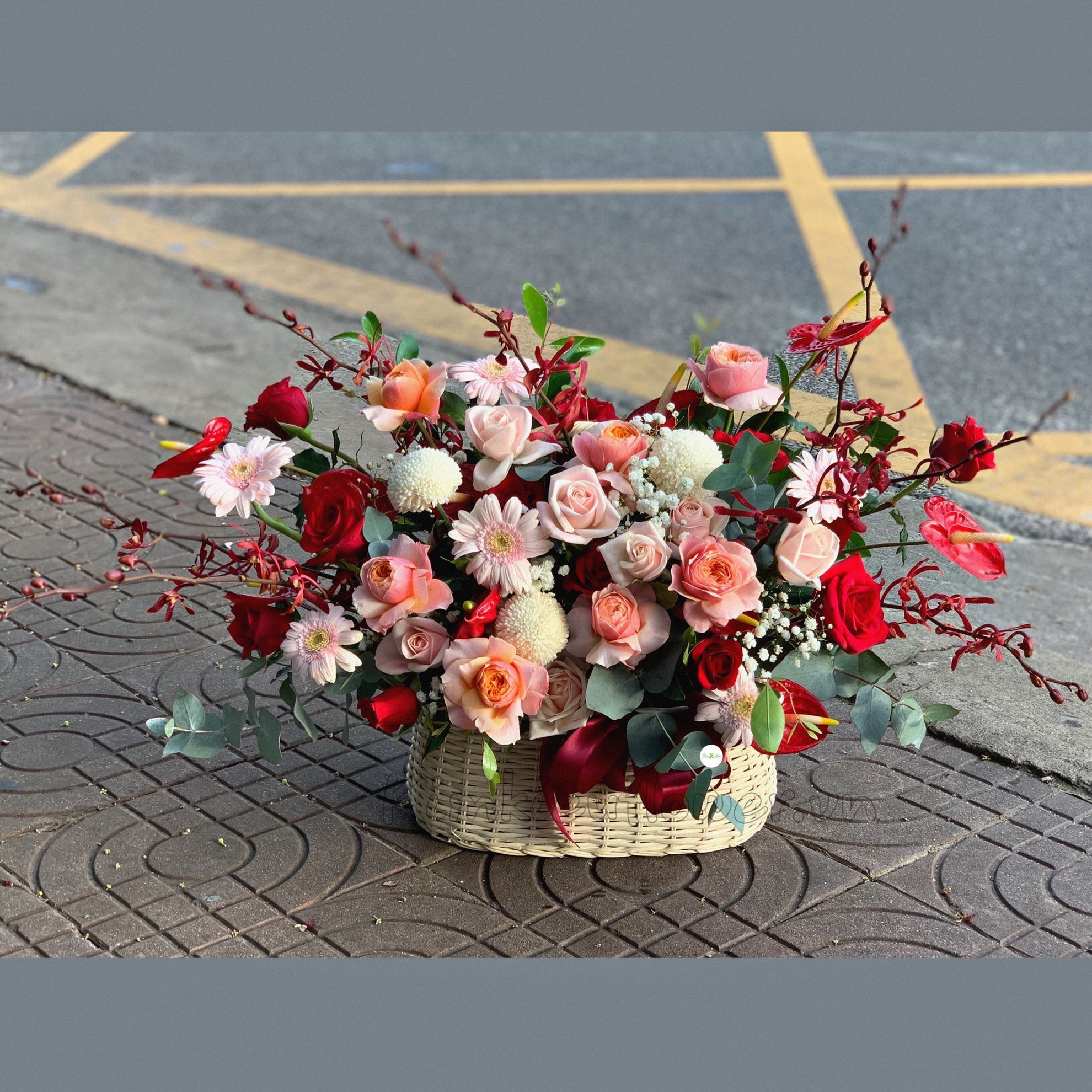 giỏ hoa hồng juliet, lan đỏ - HG272