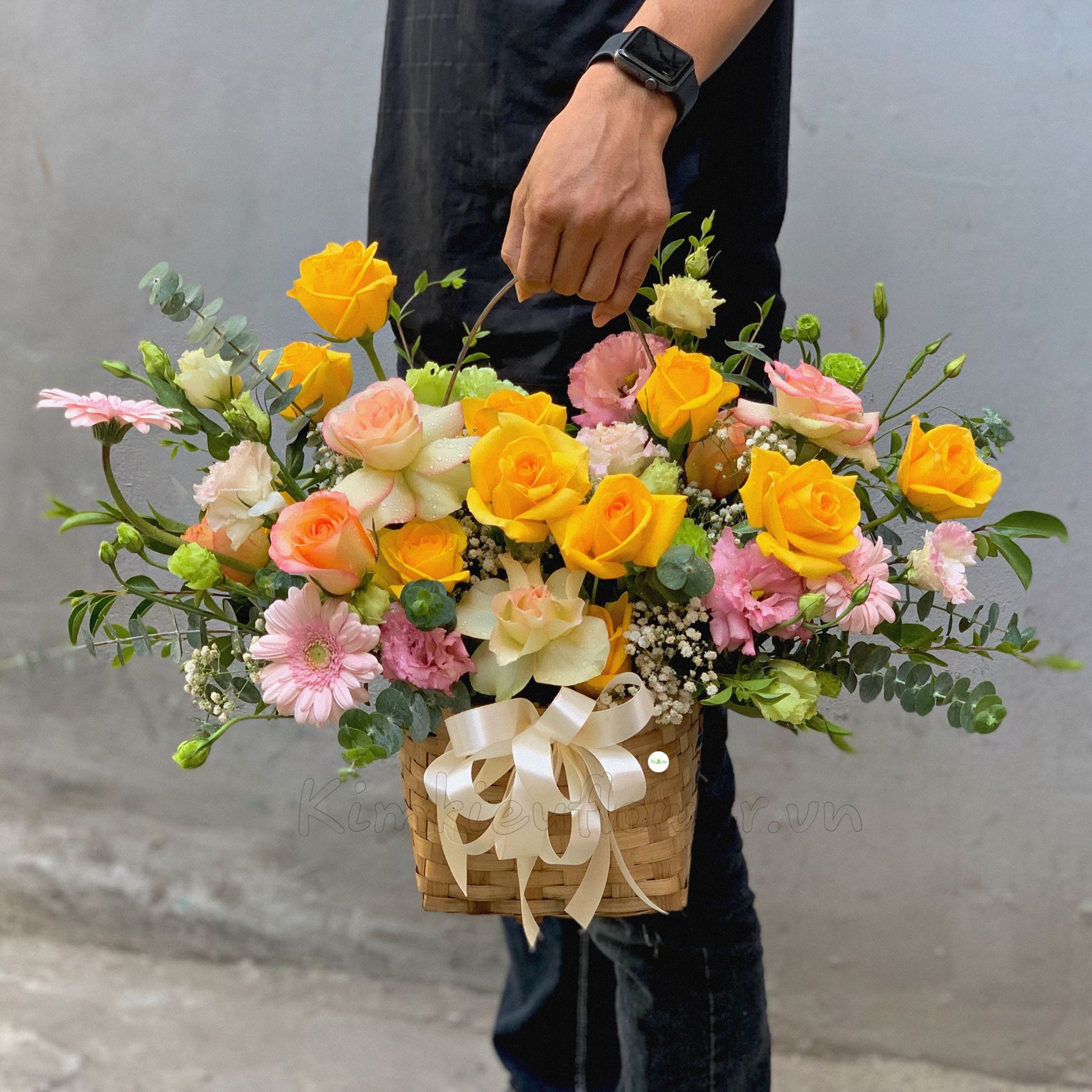 Mẫu HG244 gồm các loại hoa: + hoa hồng vàng + hoa hồng hỷ trứng + cát tường xoắn hồng, xanh + và các hoa,lá phụ khác- Liên hệ KIM KIỀU FLOWER để tư vấn thiết kế mẫu hoa theo yêu cầu bạn nhé!