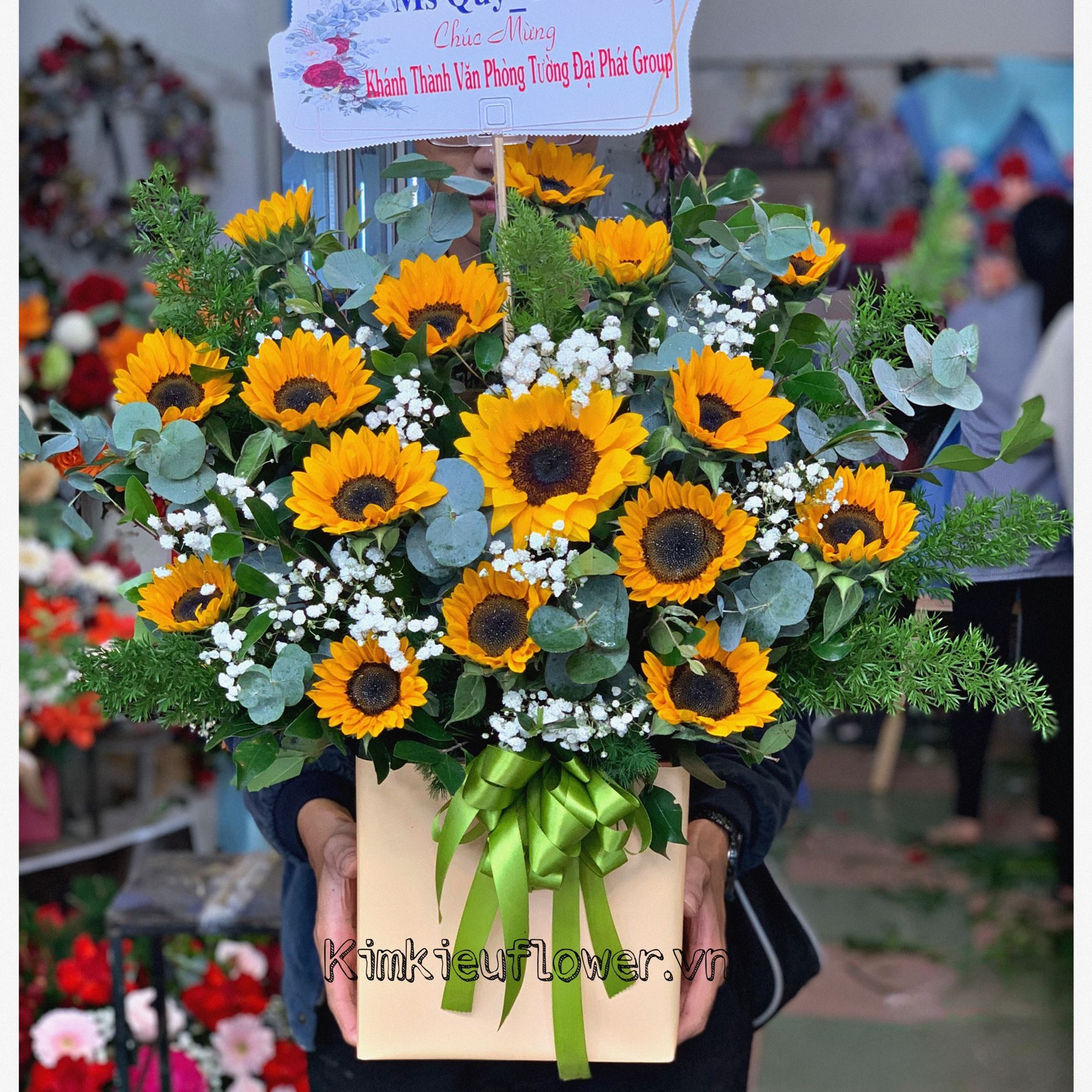 Mẫu HG506 gồm các loại hoa: + hoa hướng dương + và các lá phụ khác - Liên hệ KIM KIỀU FLOWER để tư vấn thiết kế mẫu hoa theo yêu cầu bạn nhé!