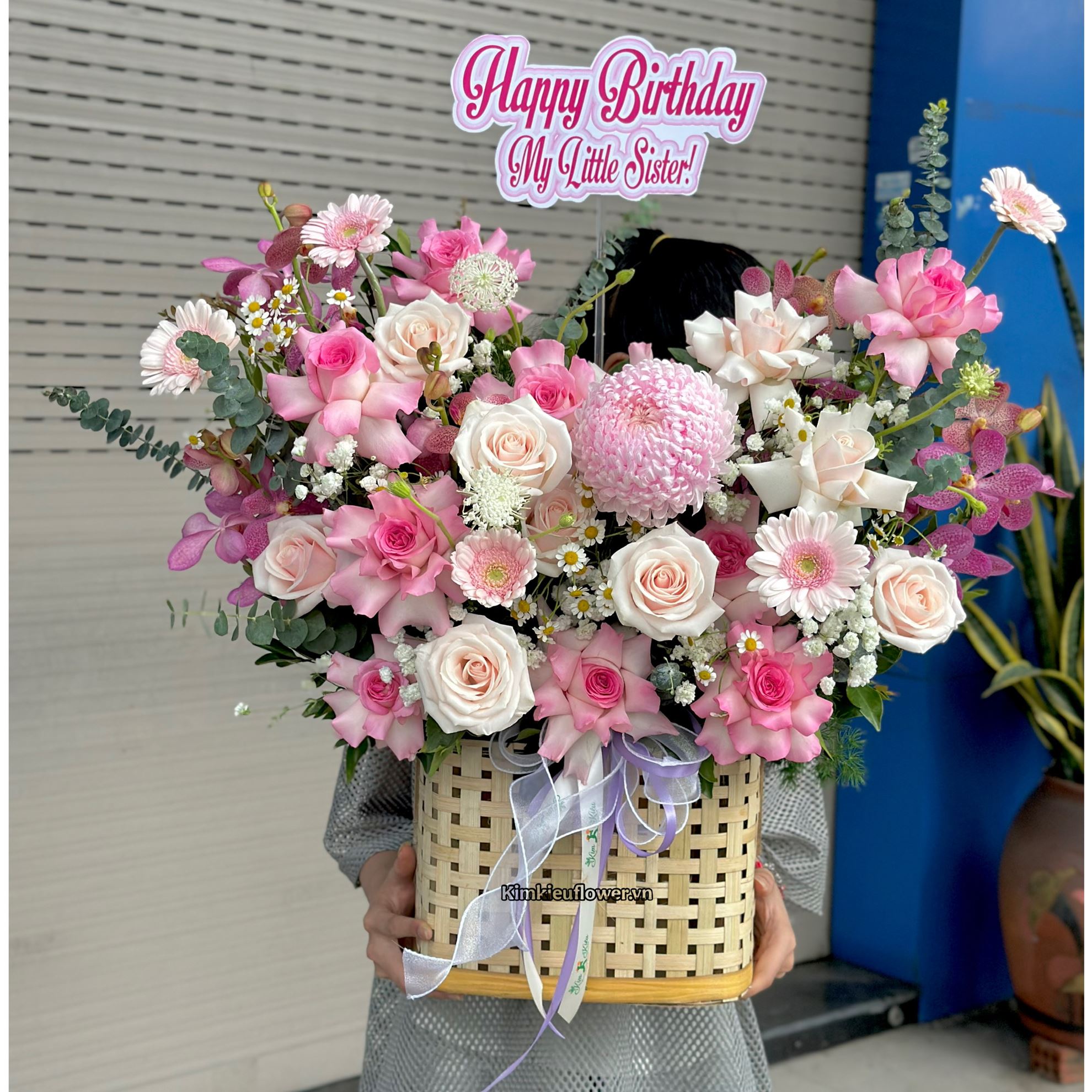 Giỏ hoa tone hồng mix cúc tana - HG1030