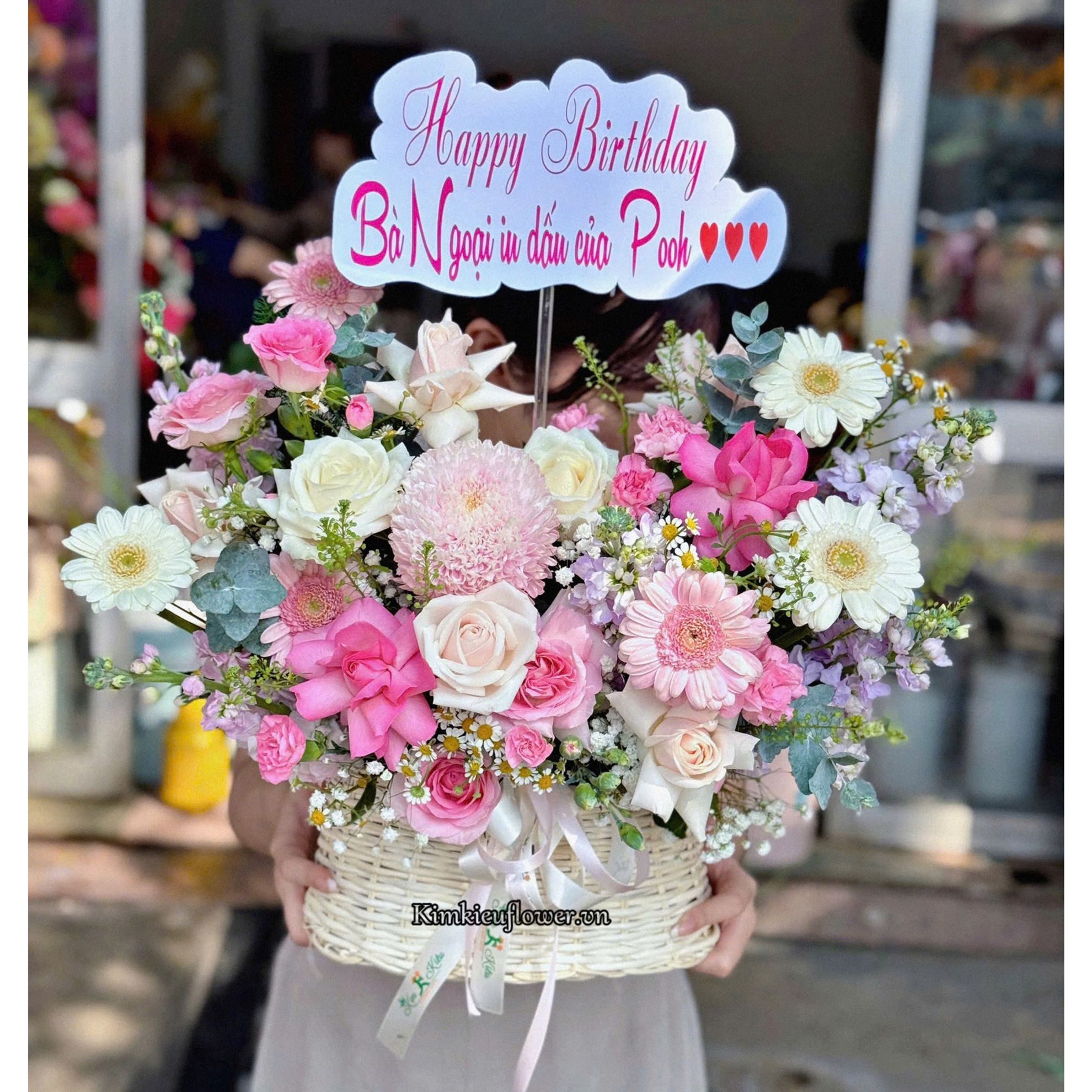 Mẫu HG767 gồm các loại hoa: + Cúc mẫu đơn hồng + 5 Phi yến tím + 2 Hoa hồng trắng + 3 Hoa hồng dâu + 3 Hoa hồng lạc thần + 4 Hoa hồng kem + Cẩm chướng hồng + 3 Đồng tiền trắng, 2 đồng tiền hồng + và các lá phụ khác - Liên hệ KIM KIỀU FLOWER để tư vấn thiết kế mẫu hoa theo yêu cầu bạn nhé!