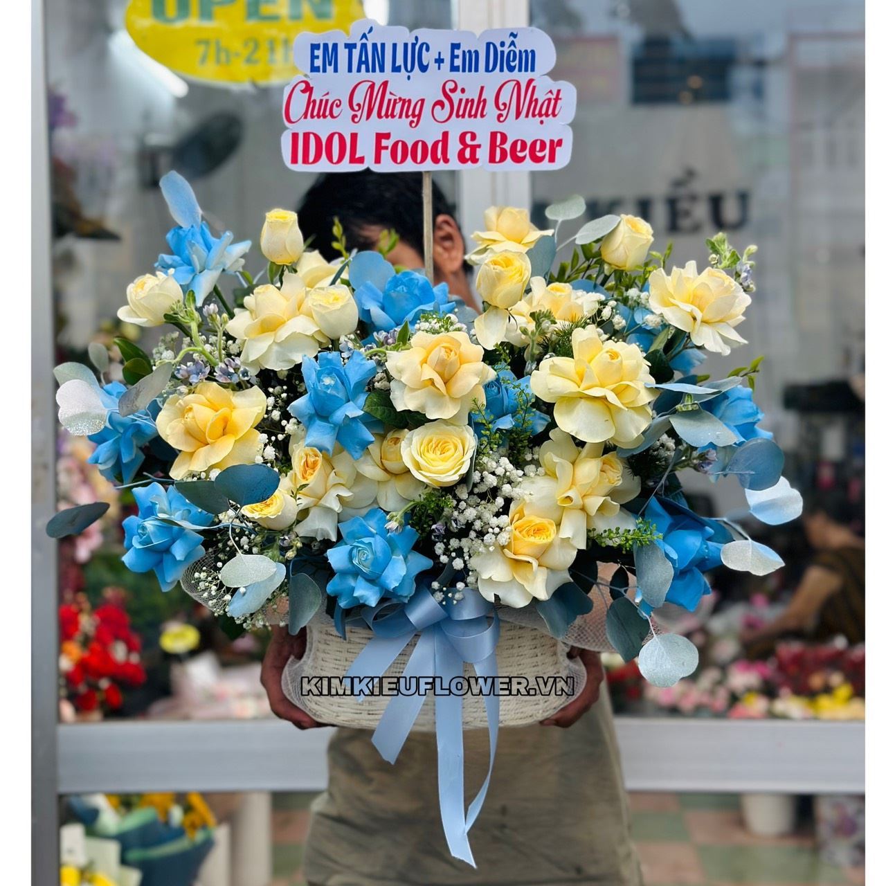 giỏ hoa tone xanh dương, victo vàng - HG704