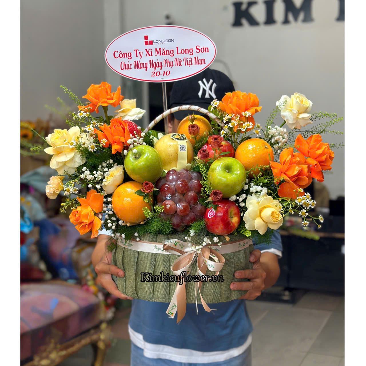 Mẫu HTC11 gồm các loại: + Trái cây theo thời giá + Hoa hồng cam + Hoa hồng victor vàng + và các lá phụ khác - Liên hệ KIM KIỀU FLOWER để tư vấn thiết kế mẫu hoa theo yêu cầu bạn nhé!