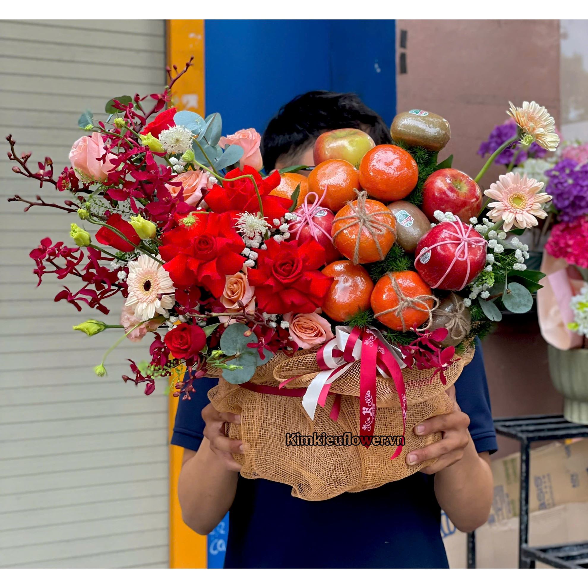 Giỏ hoa trái cây tone đỏ cam - HTC23