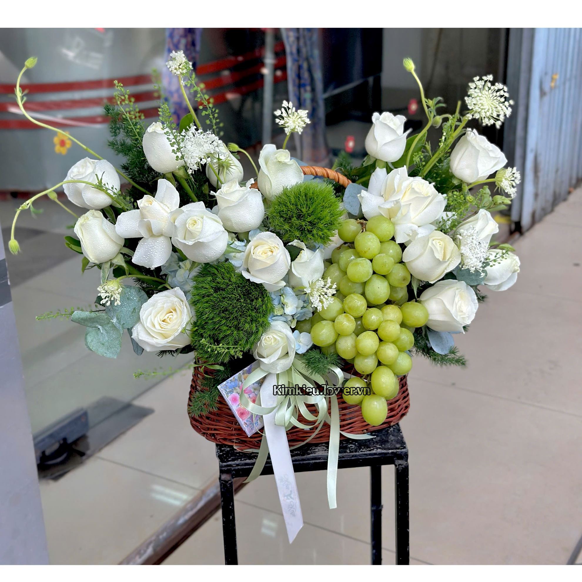 Giỏ hoa trái cây tone trắng xanh lá - HTC25