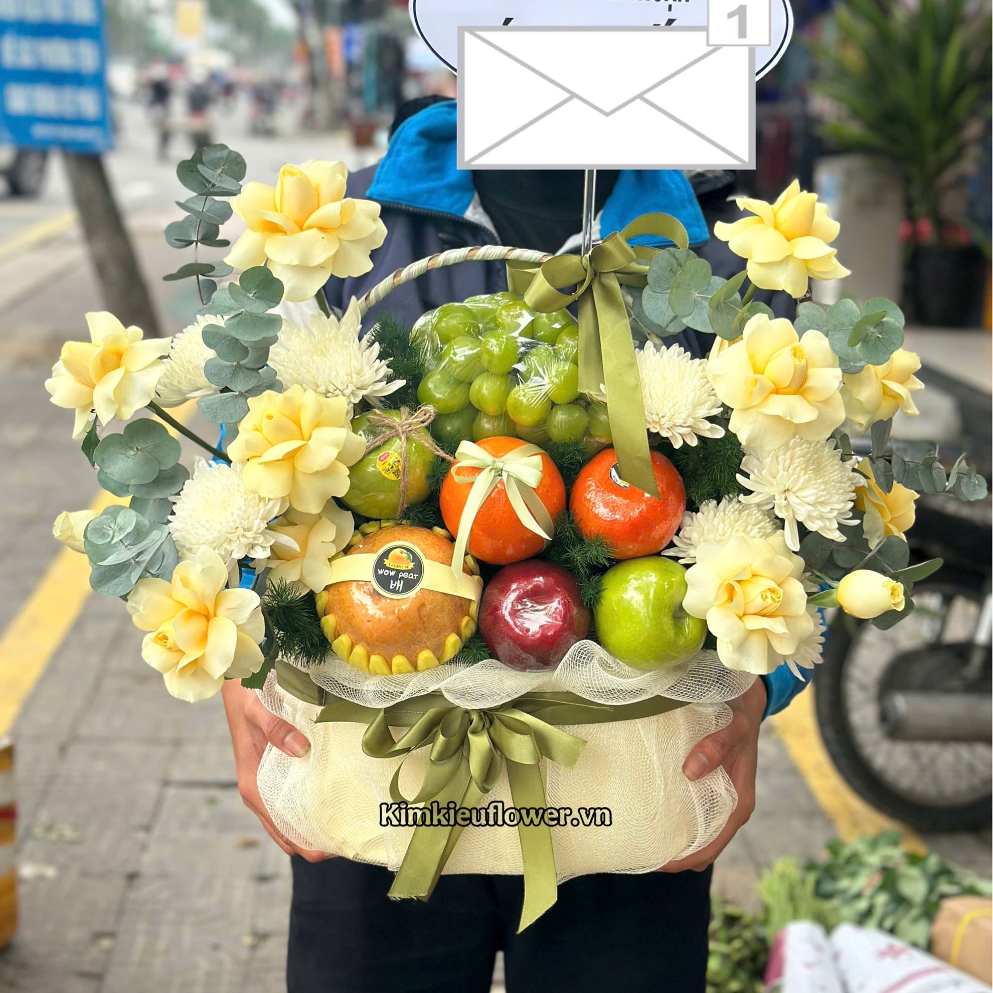 Mẫu HTC19 gồm các loại: + Trái cây theo thời giá + Hồng victor vàng + Cúc trắng + và các lá phụ khác - Liên hệ KIM KIỀU FLOWER để tư vấn thiết kế mẫu hoa theo yêu cầu bạn nhé!