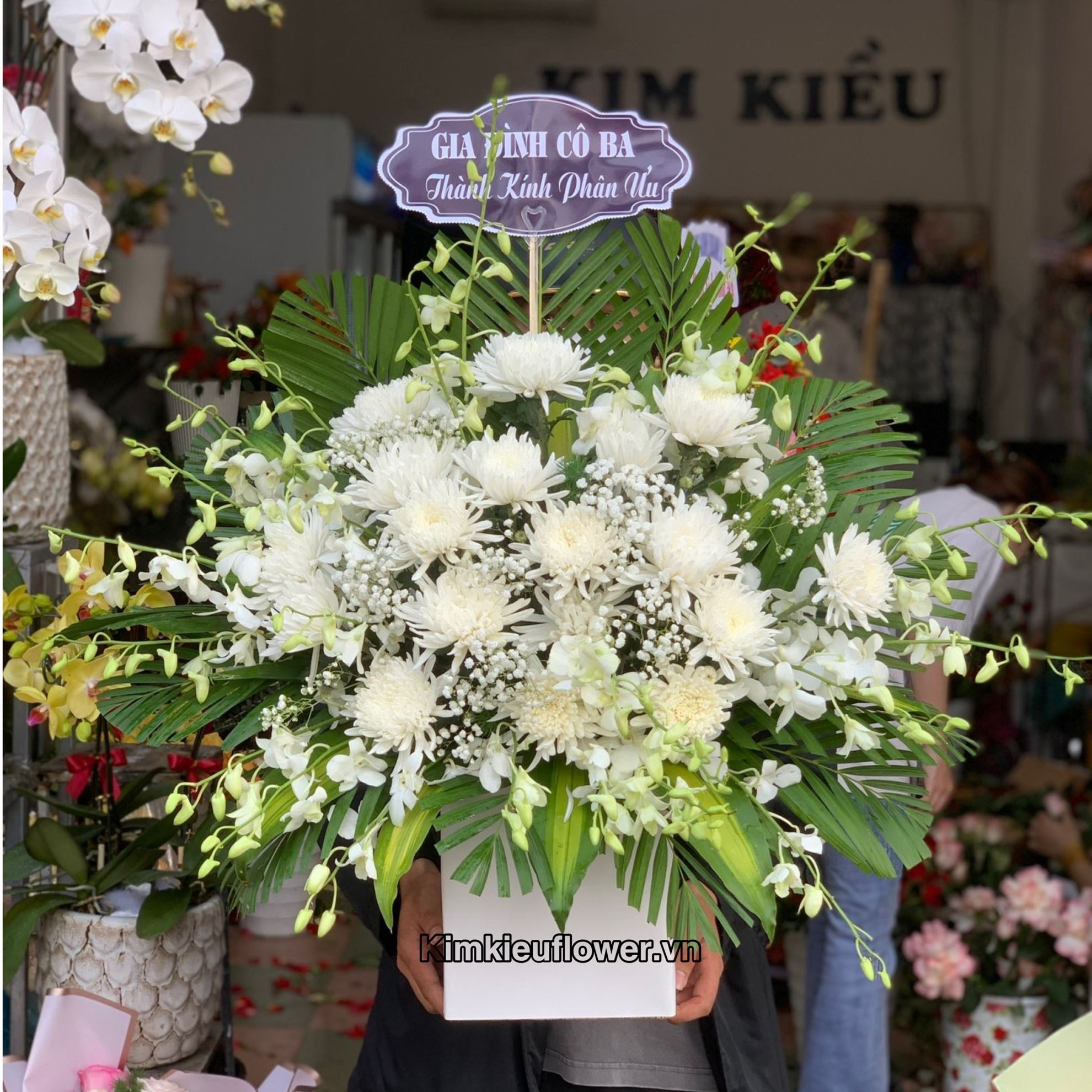 giỏ hoa viếng cúc trắng, lan trắng - GV07