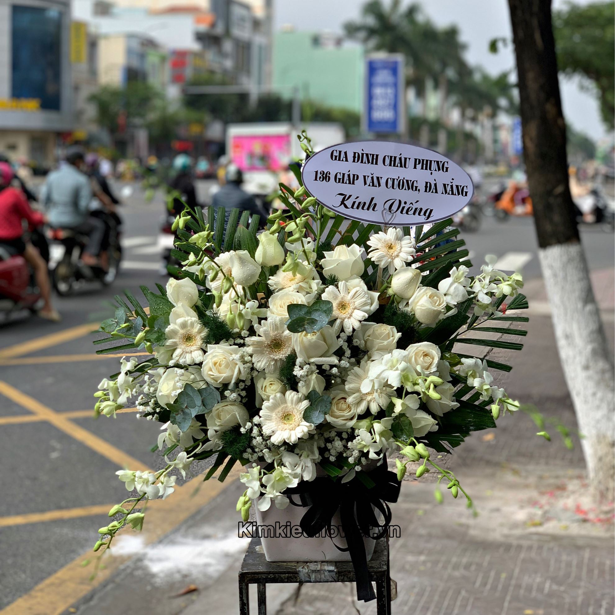 Mẫu GV01 gồm các loại hoa + hoa hồng trắng + hoa đồng tiền trắng + lan trắng + và các lá phụ khác - Liên hệ KIM KIỀU FLOWER để tư vấn thiết kế mẫu hoa theo yêu cầu bạn nhé!