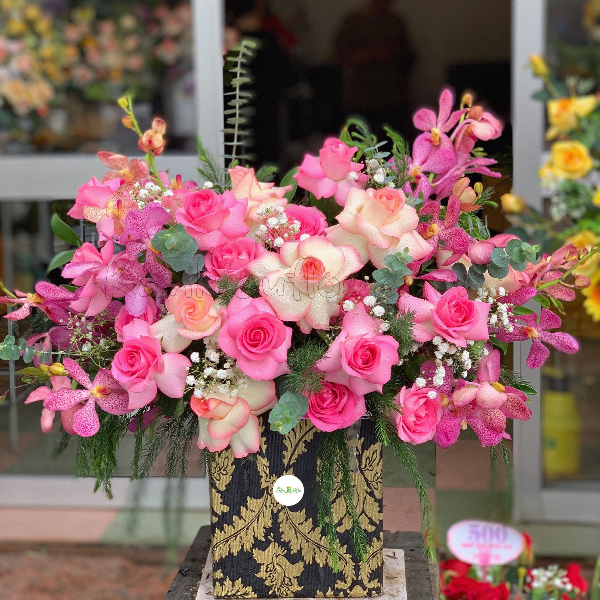 Mẫu HG123 gồm các loại hoa: + hoa hồng dâu + lan tím + và các hoa,lá phụ khác - Liên hệ KIM KIỀU FLOWER để tư vấn thiết kế mẫu hoa theo yêu cầu bạn nhé!