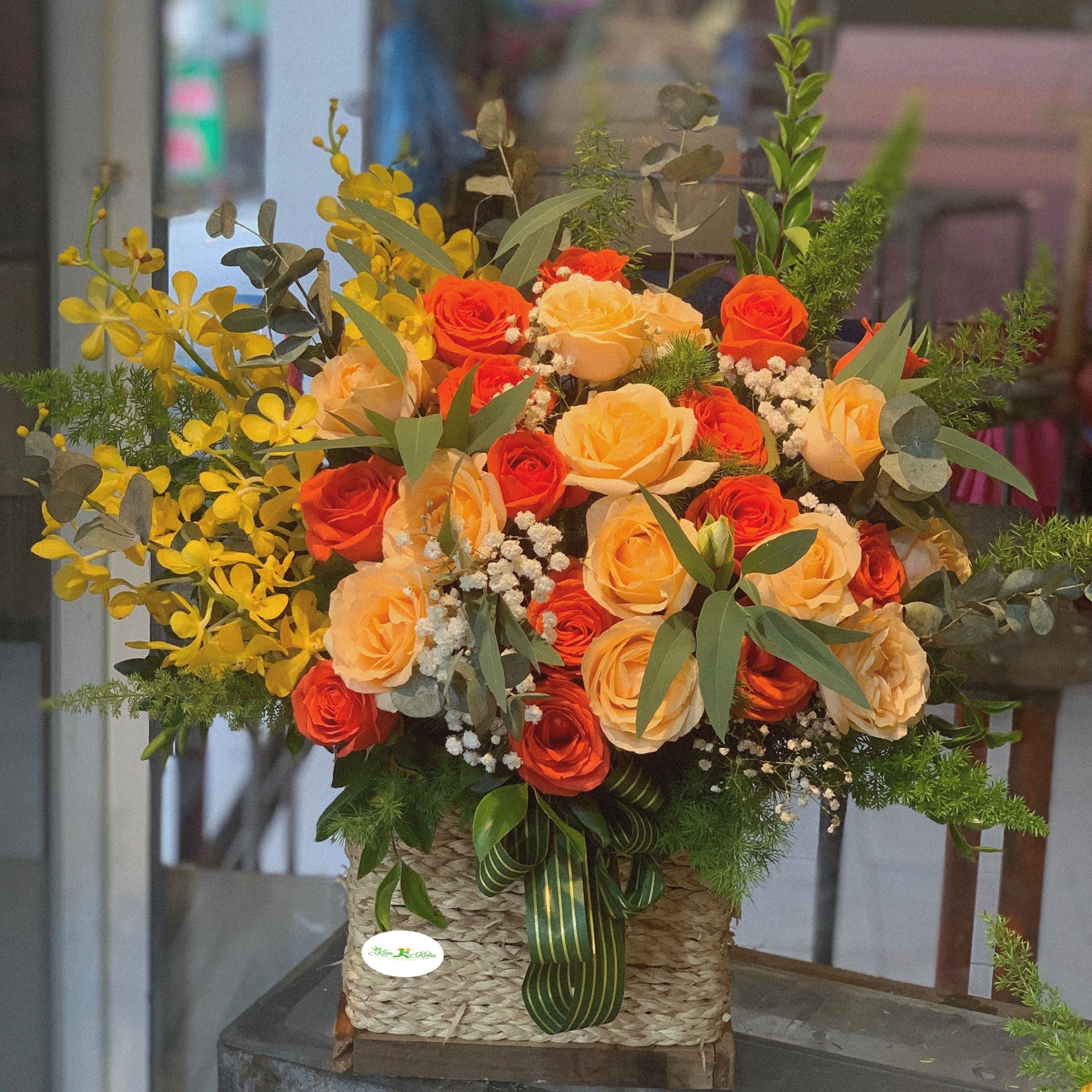 Hoa giỏ hồng đỏ cam,mỡ gà- HG89